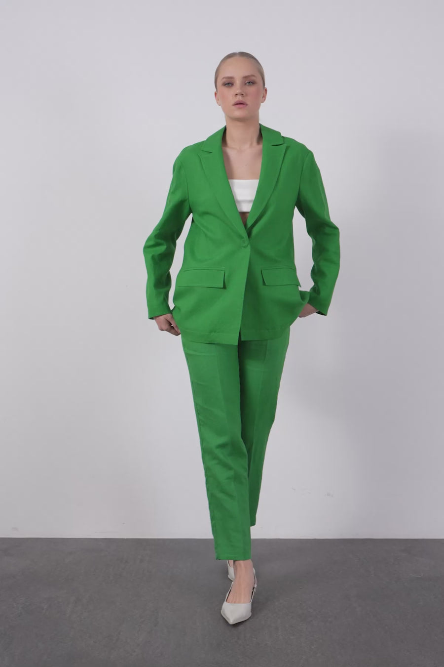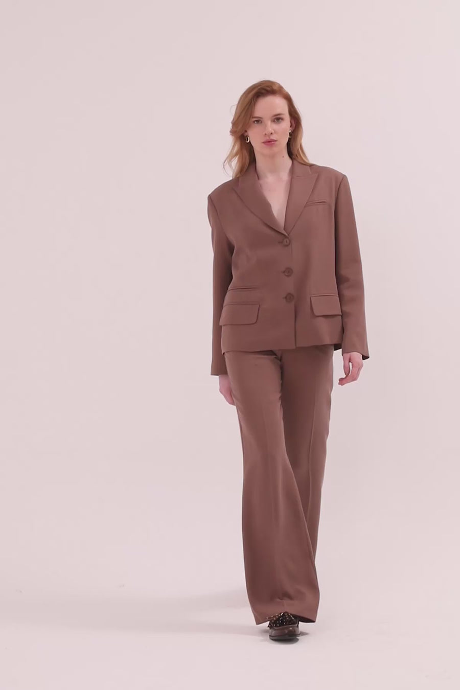 Arkadan Düğmeli Ceket Ve Palazzo Pantolonlu Takım