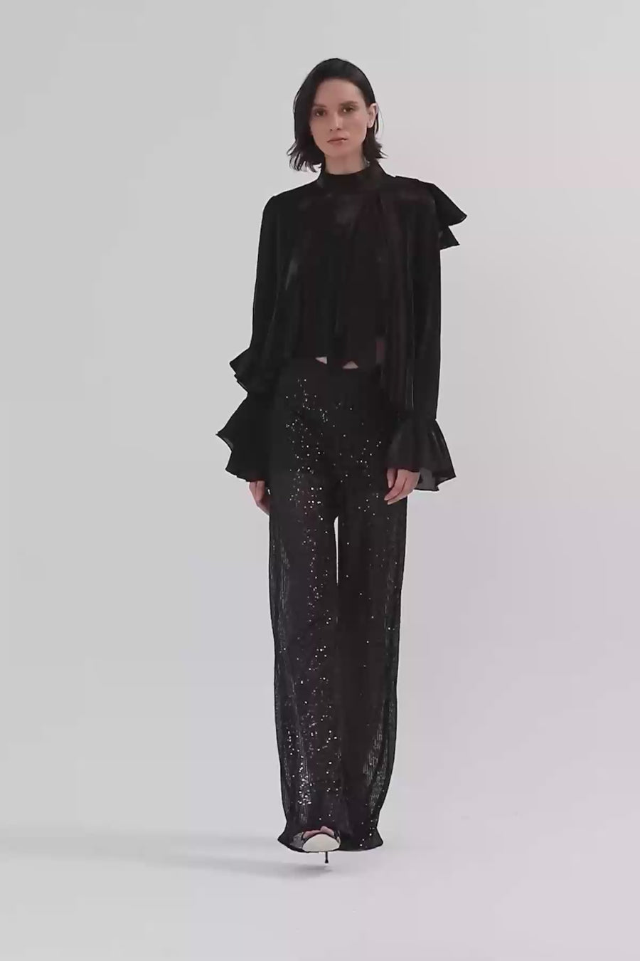 Arkası Fermuarlı Transparan Bluz