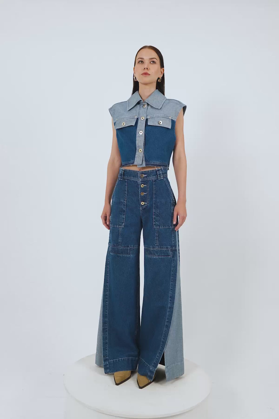 Asimetrik Çok Parçalı Jean Ceket