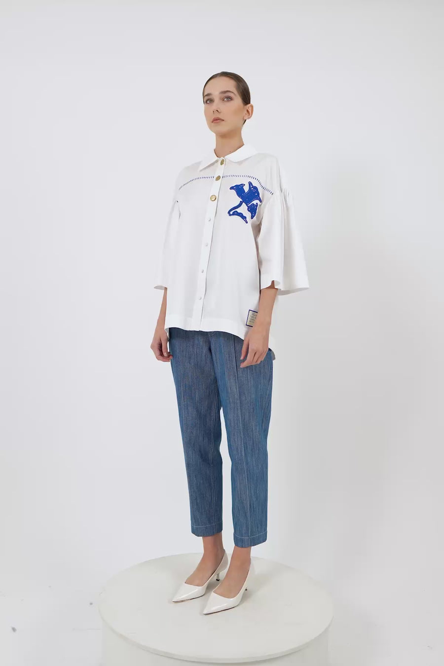 Dikiş Detaylı Nakışlı Poplin Gömlek