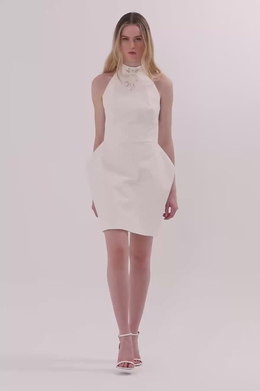 Dik Yakalı Asimetrik Kesim Elbise