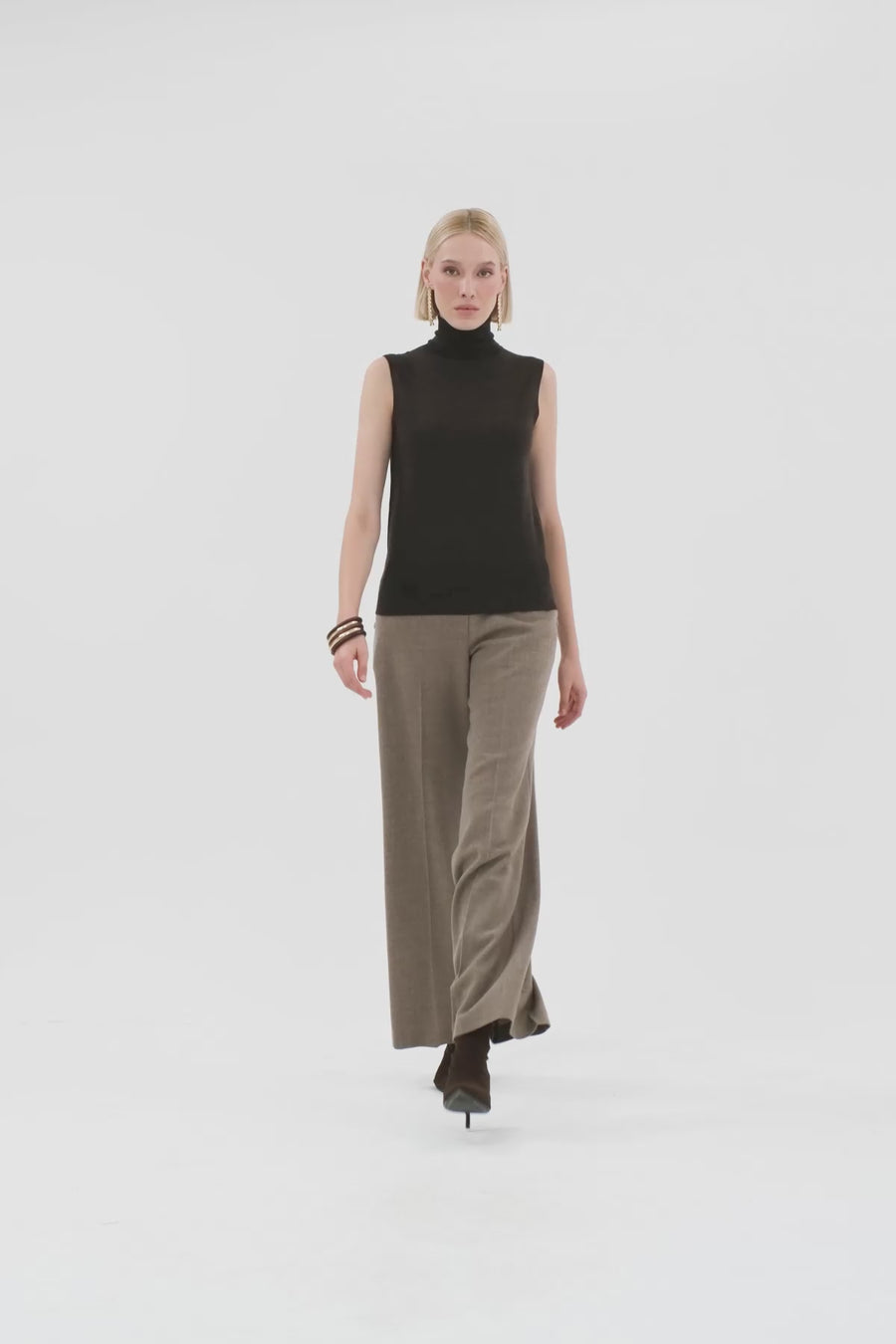 Dik Yaka Yün Karışımlı Triko Kazak