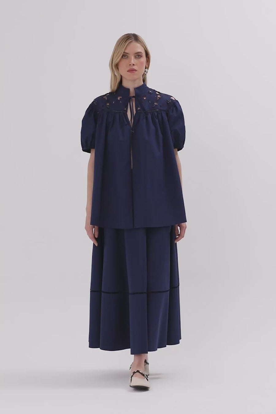 Dik Yakalı İşleme Detaylı Bluz