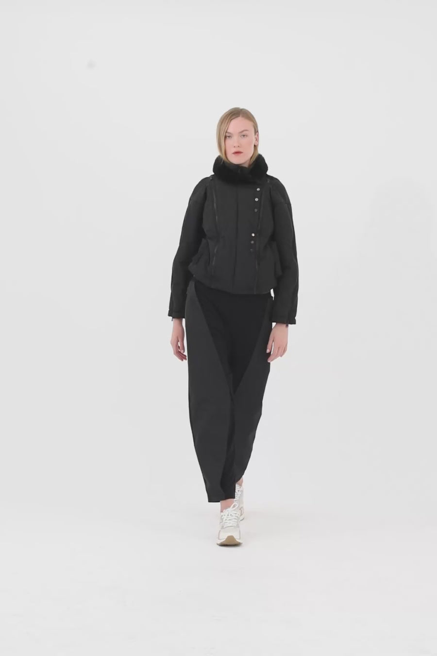 Dik Yakalı Kol Yanları Fermuar Detaylı Ceket