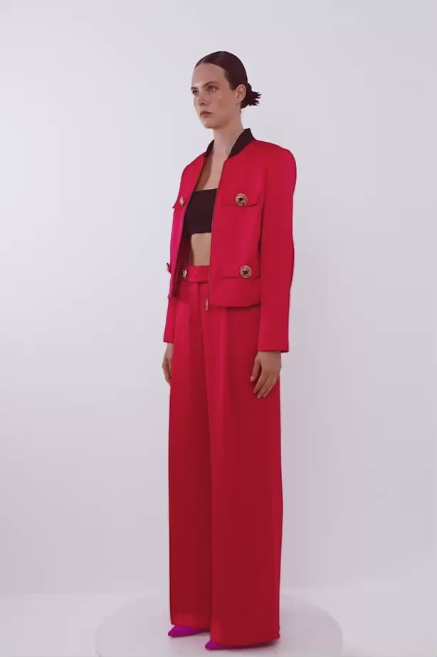 Dokulu Kruvaze Ceket Ve Palazzo Pantolonlu Takım Elbise