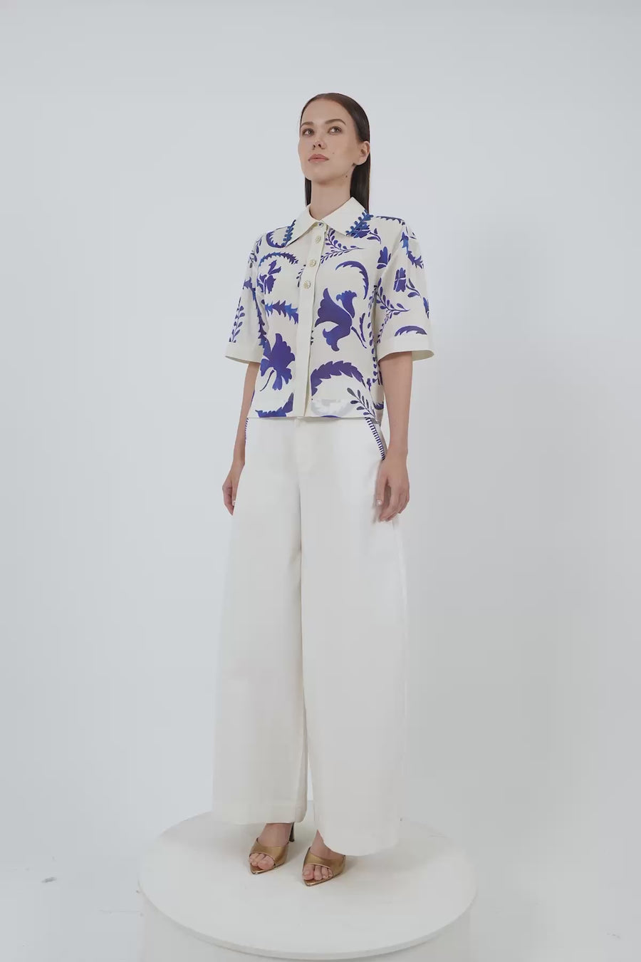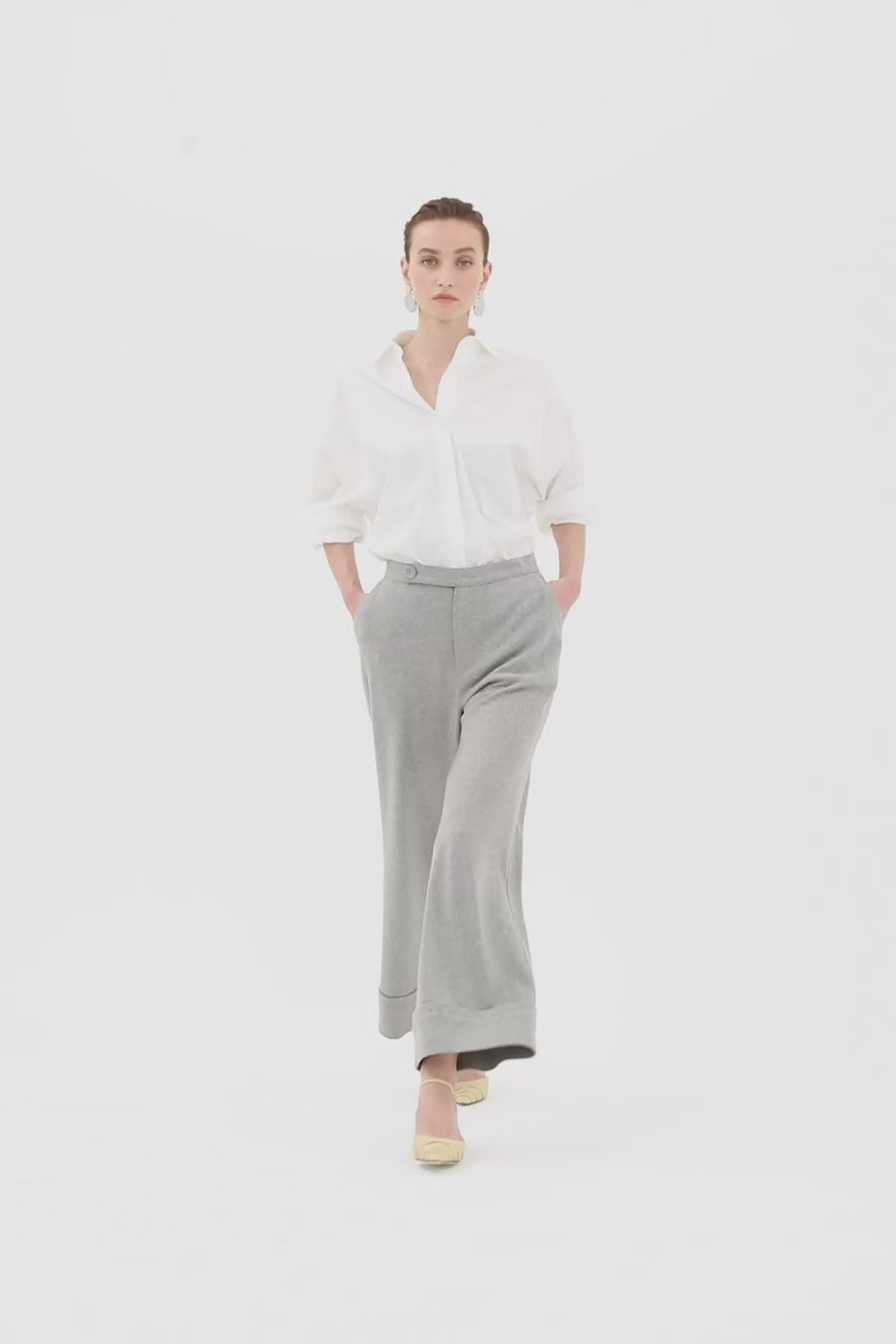 Düğme Detaylı Plili Geniş Paça Pantolon