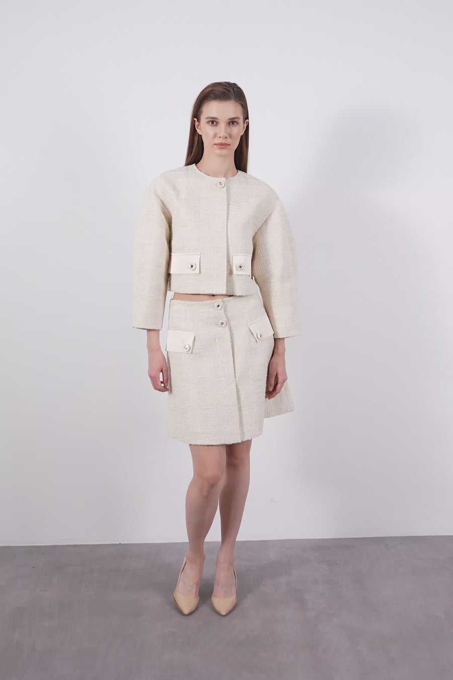 Düğme Kapamalı Ceket Ve Piliseli Etek
