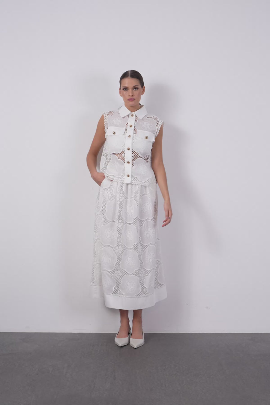Düğme Detaylı Transparan Sıfır Kol Bluz