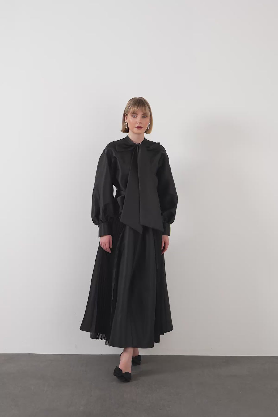 Fiyonk Detaylı Astarlı Uzun Elbise