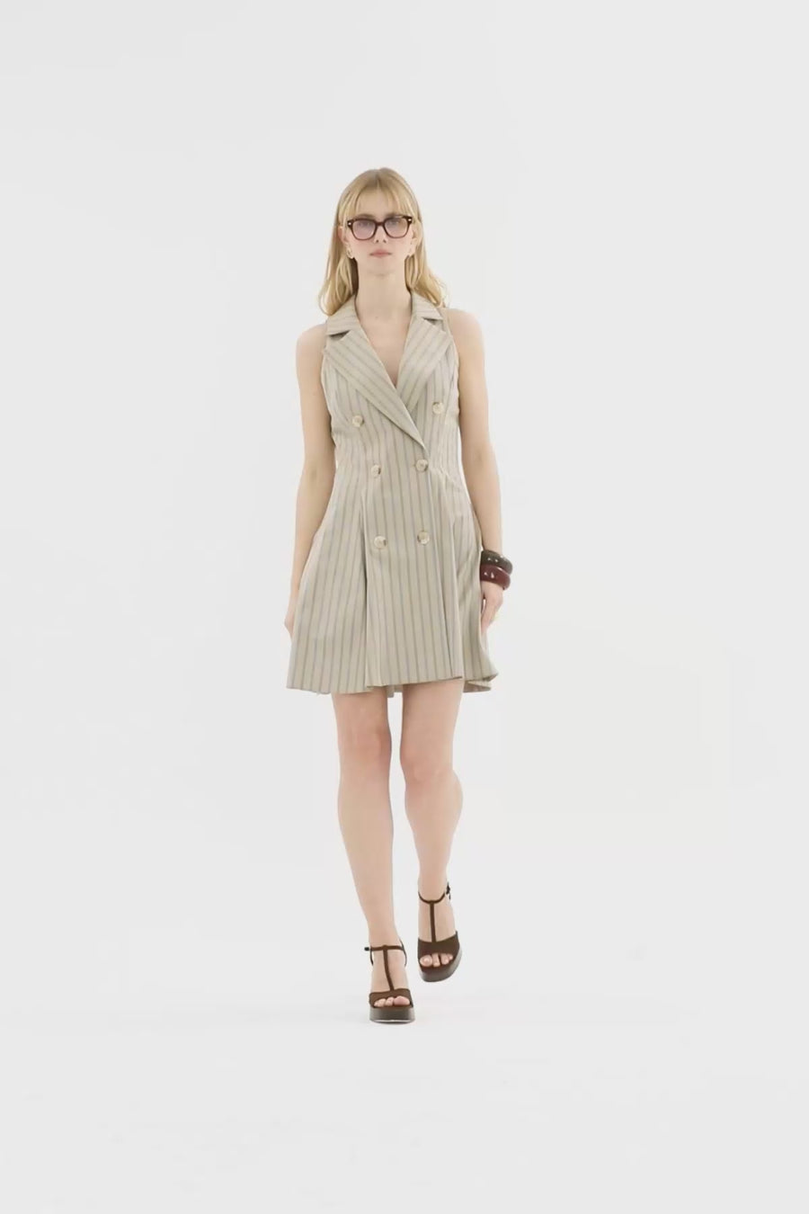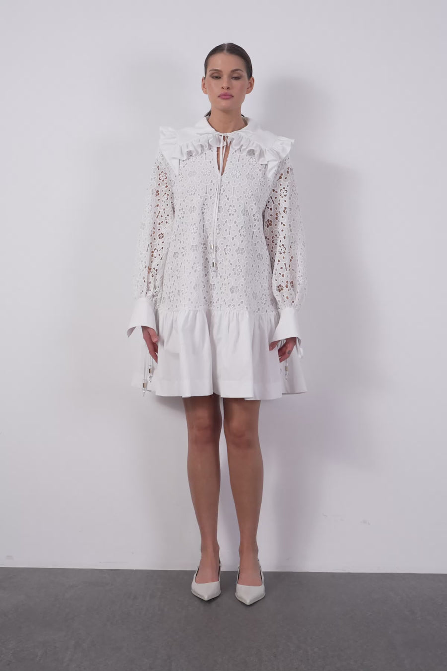 Geniş Kollu Kontrast Renkli Kısa Elbise