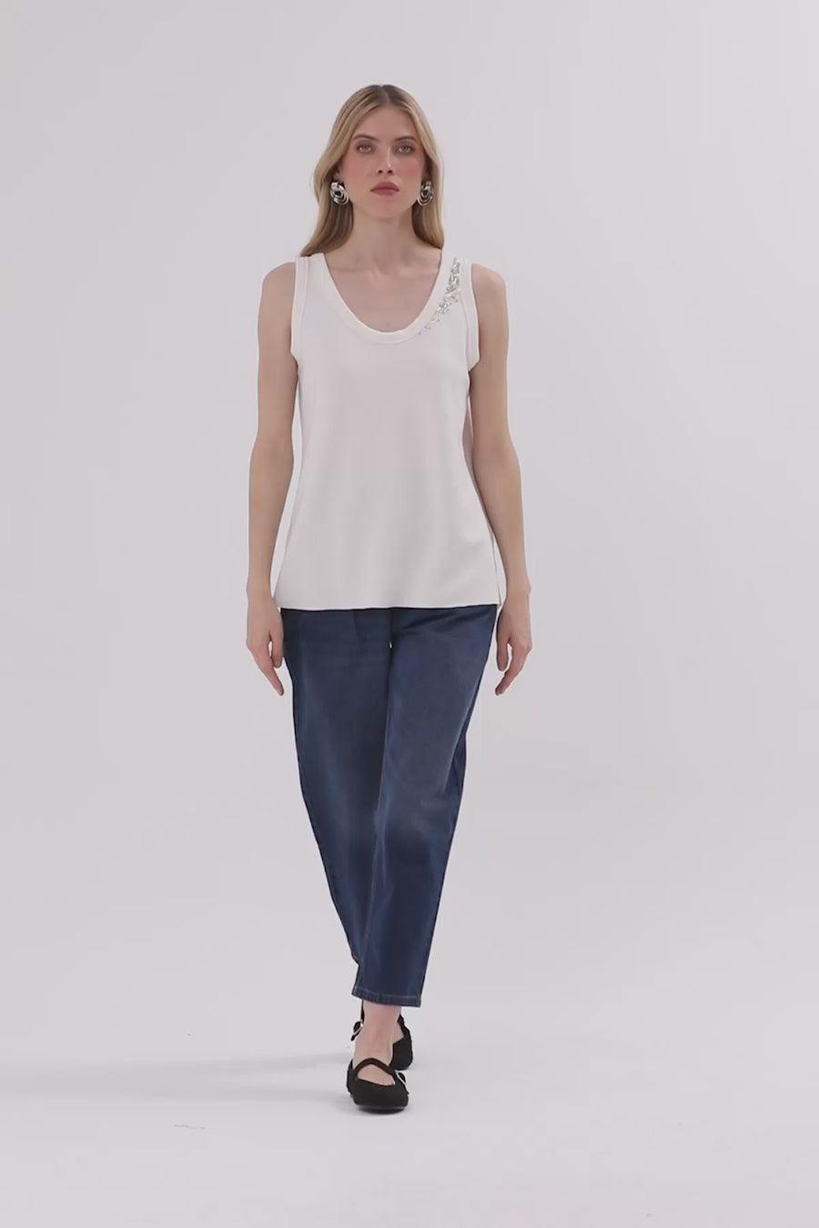 Ve Boncuk İşlemeli Sıfır Kol Bluz