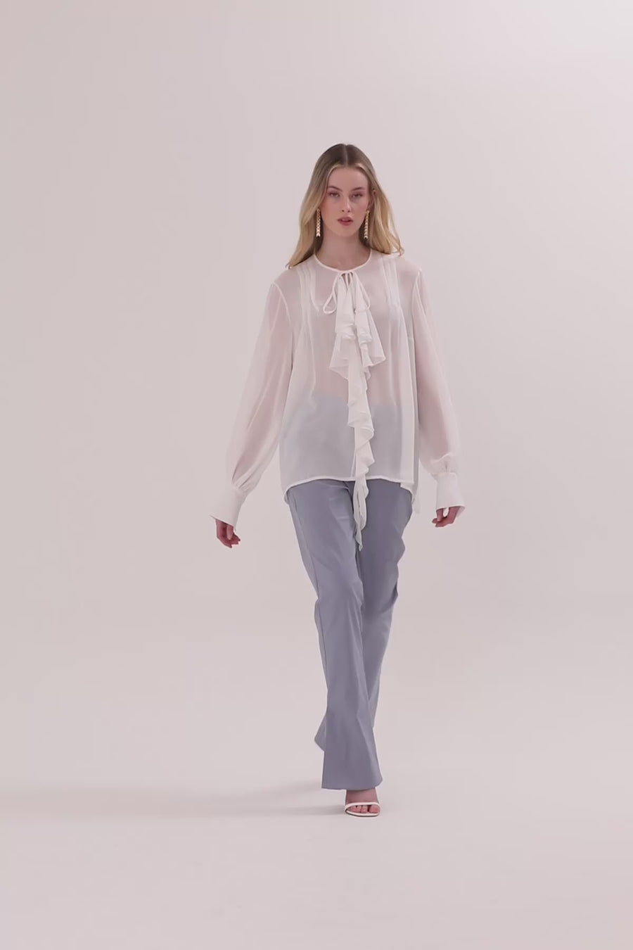 V Yakalı Organze Parçalı Kısa Kollu Bluz
