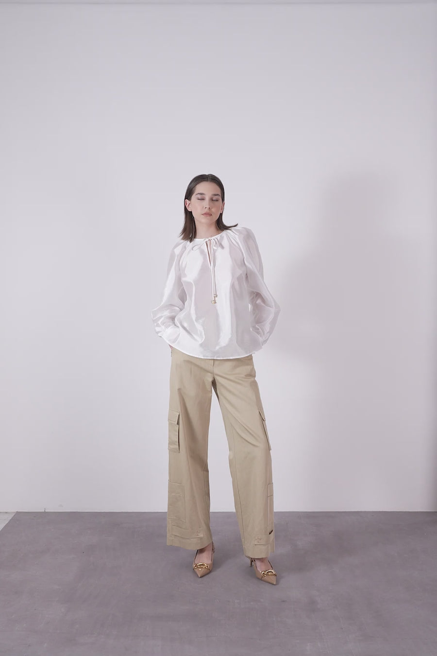 Baskılı Ve Omuzda İşleme Detaylı Bluz