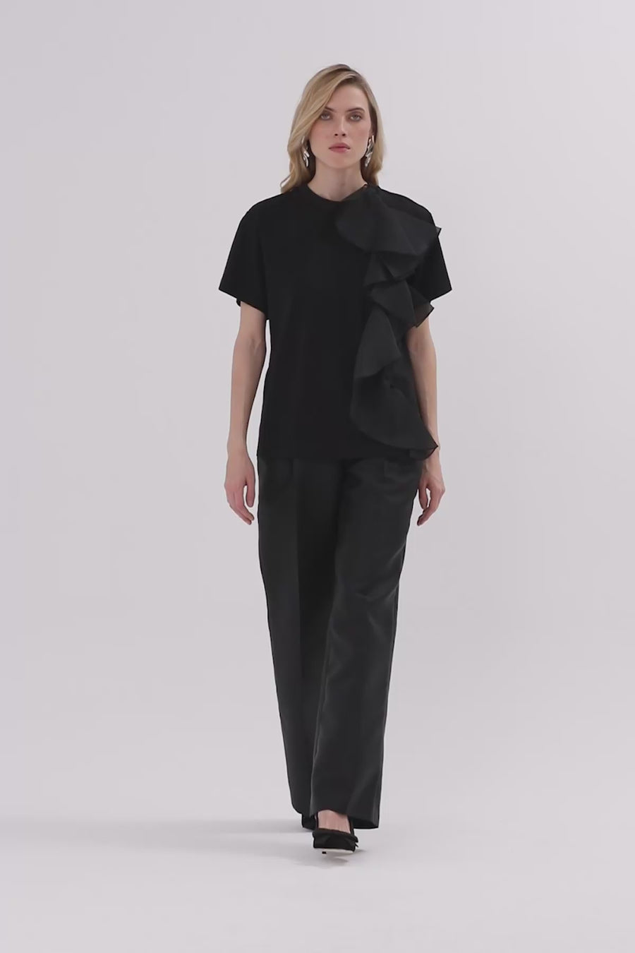 Yuvarlak Yaka Organze Volanlı Kısa Kollu T-shırt