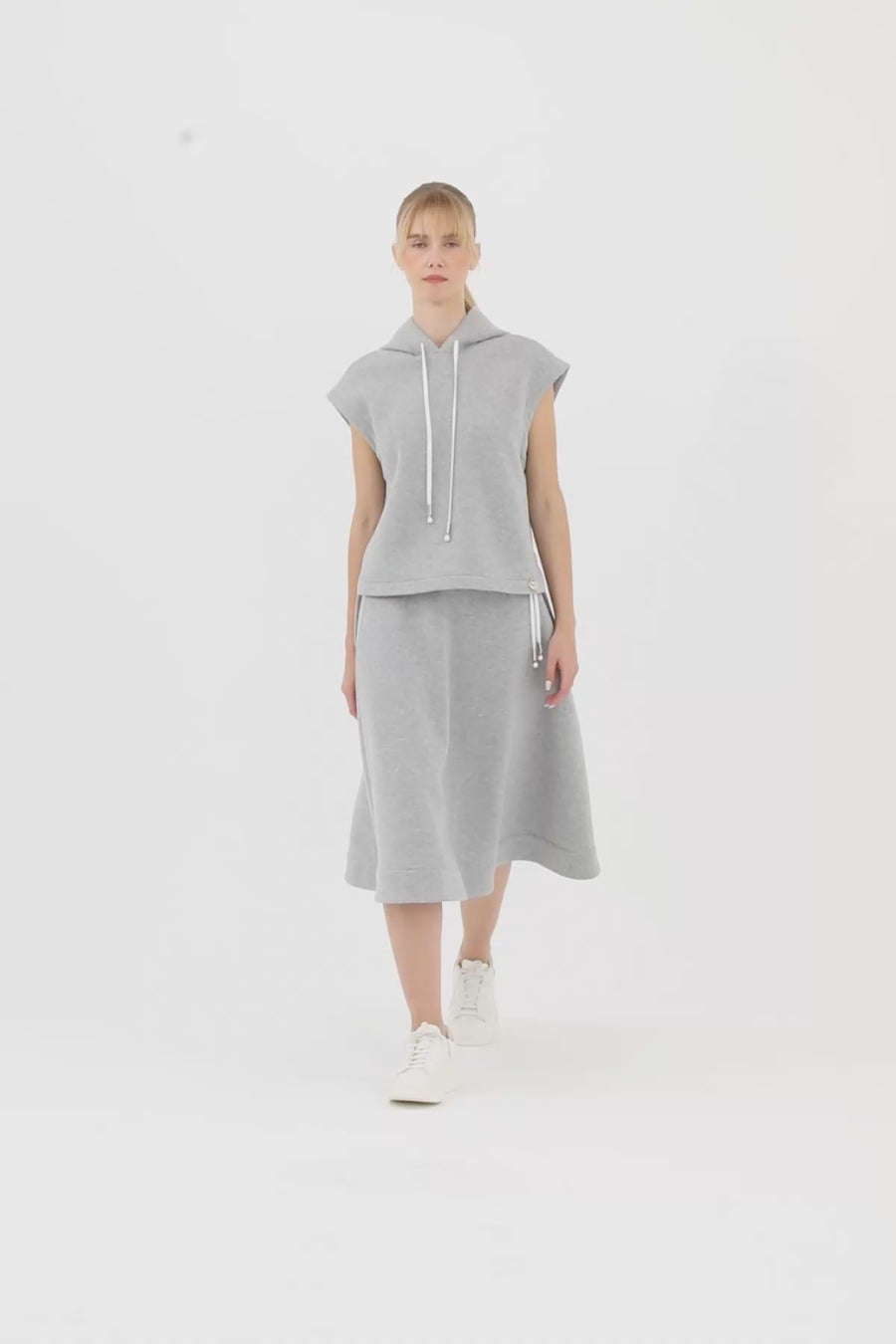 Kontrast Biyeli Kapuşonlu Triko Detaylı Üst