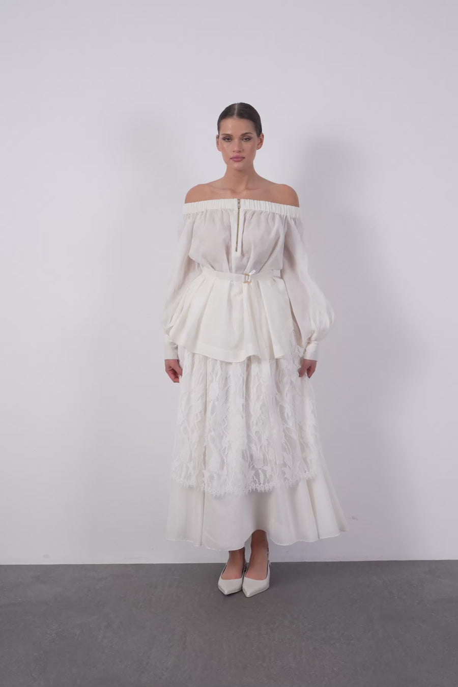 Metal Aksesuarlı Truvakar Kol Beyaz Oversize Bluz