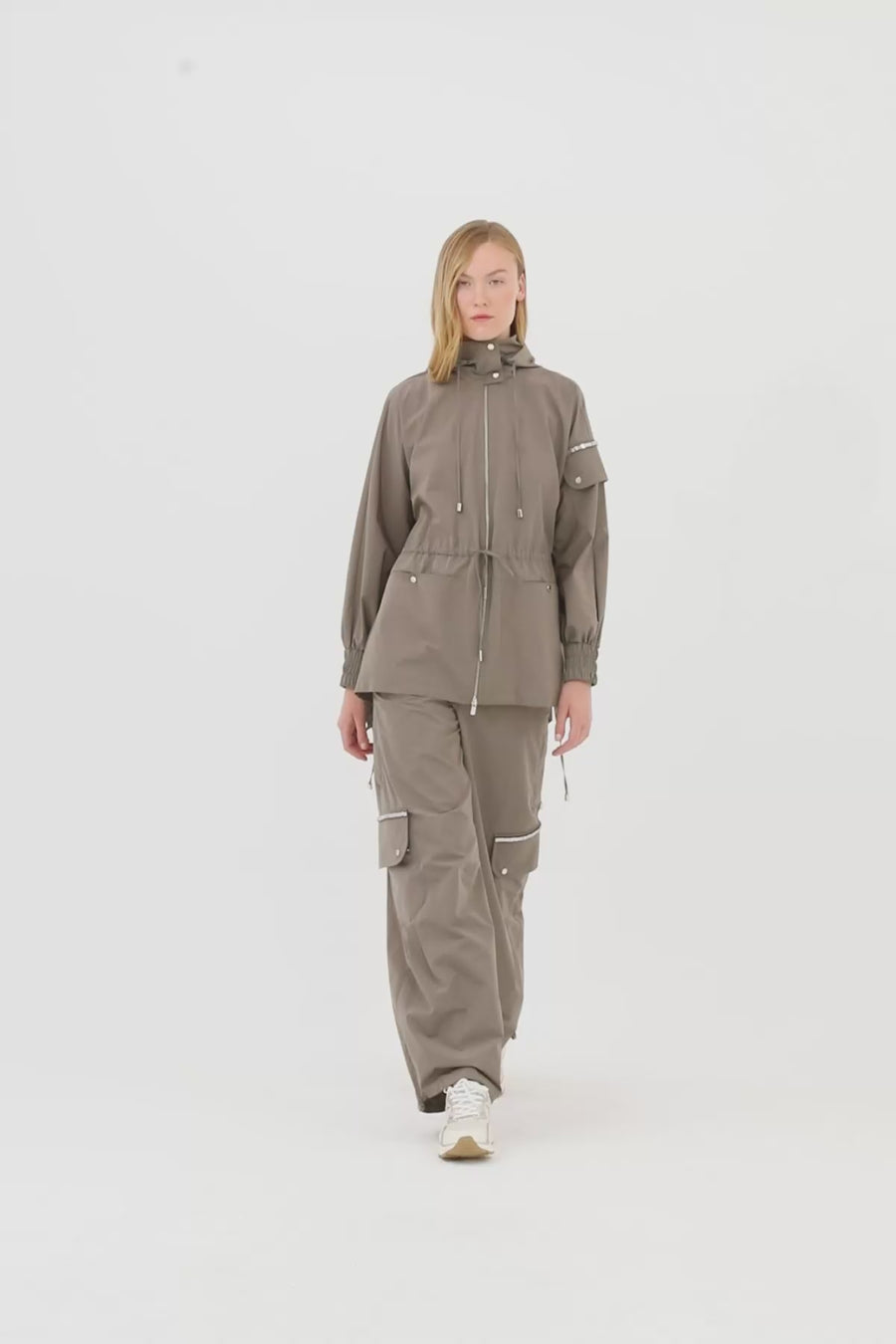 Beli Bağcıklı Büzgü Detaylı İşlemeli Yağmurluk