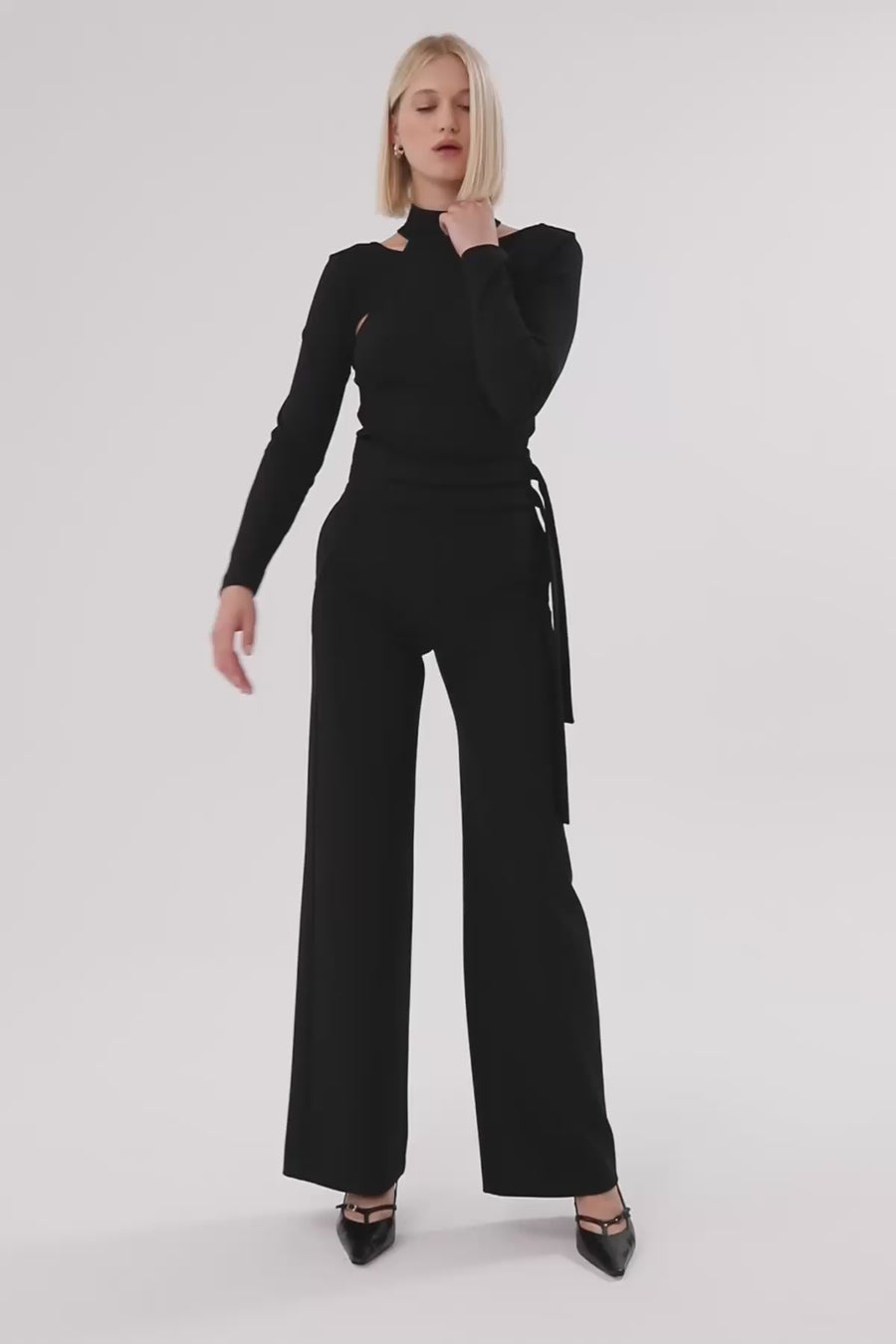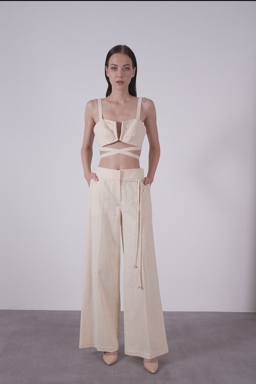 Bel Detaylı Pileli Duble Paçalı Geniş Pantolon