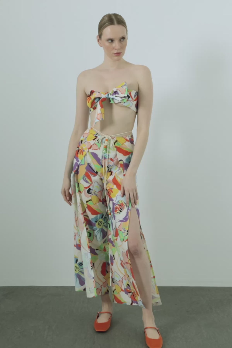 Önden Yırtmaç Detaylı Belden Bağlamalı Pantolon