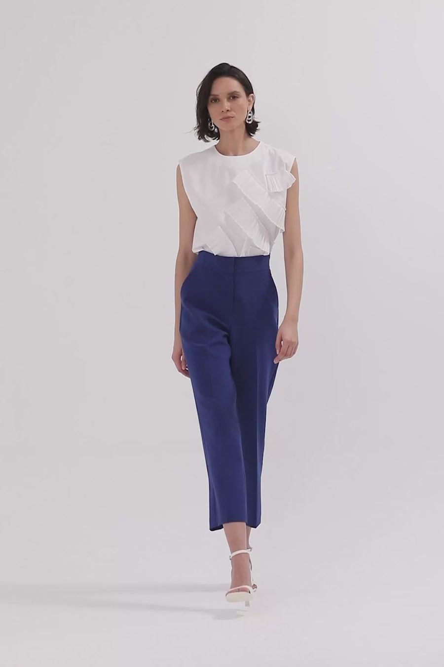 Önü Pili Detaylı Dokuma Pantolon