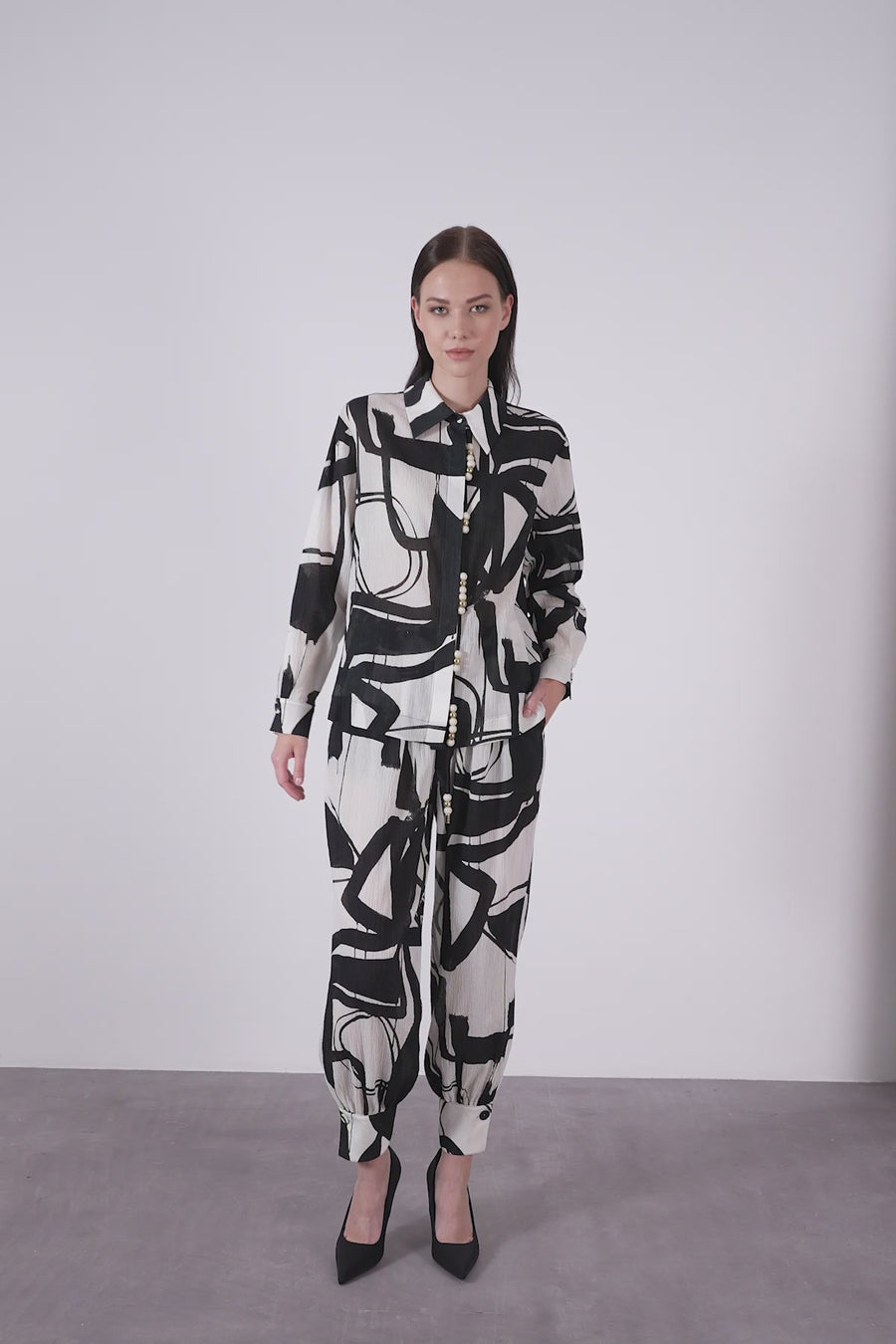 Boncuklu Kordon Detaylı Desenli Gömlek