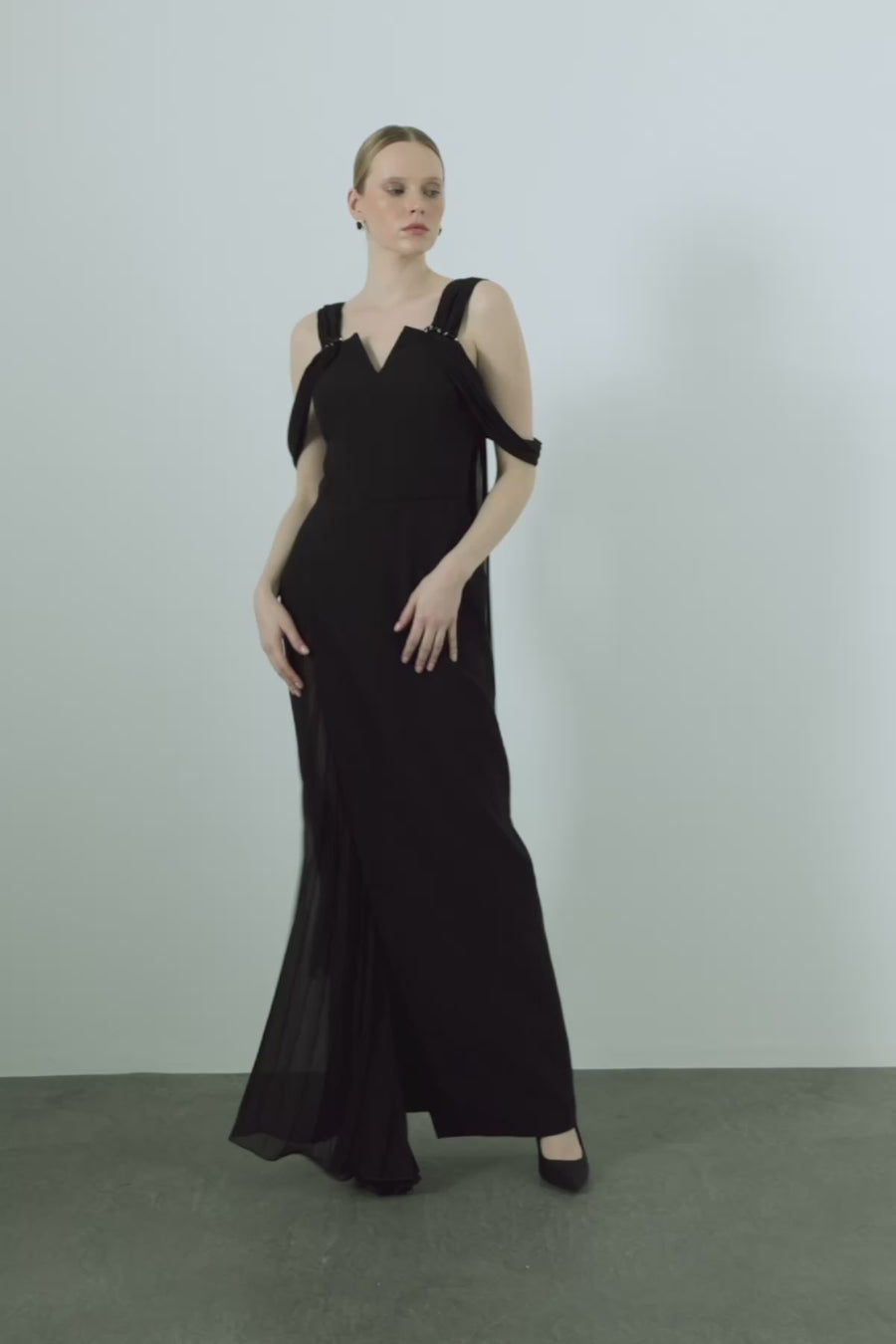 Beli Piliseli Ve İşleme Detaylı Eteği Kloş Abiye Elbise