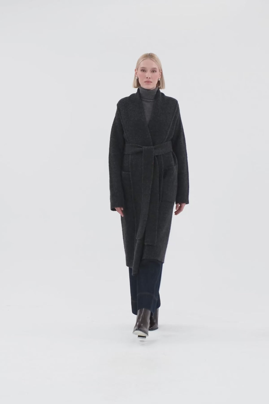 Şal Yaka Aplike Cepli Uzun Kol Kaban