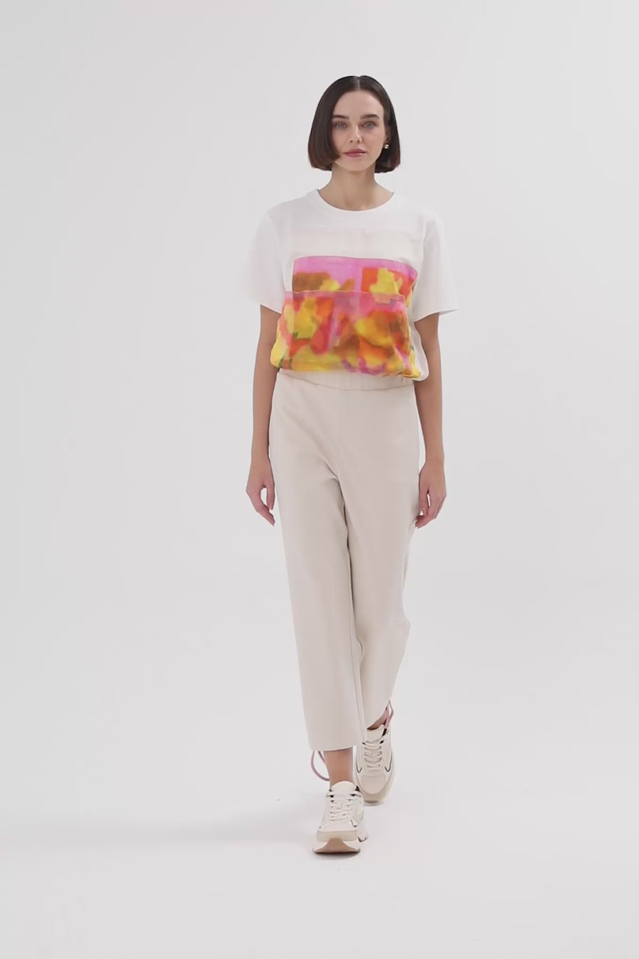 Renkli Jakarlı Baskı Detaylı Karpuz Kol Tshirt