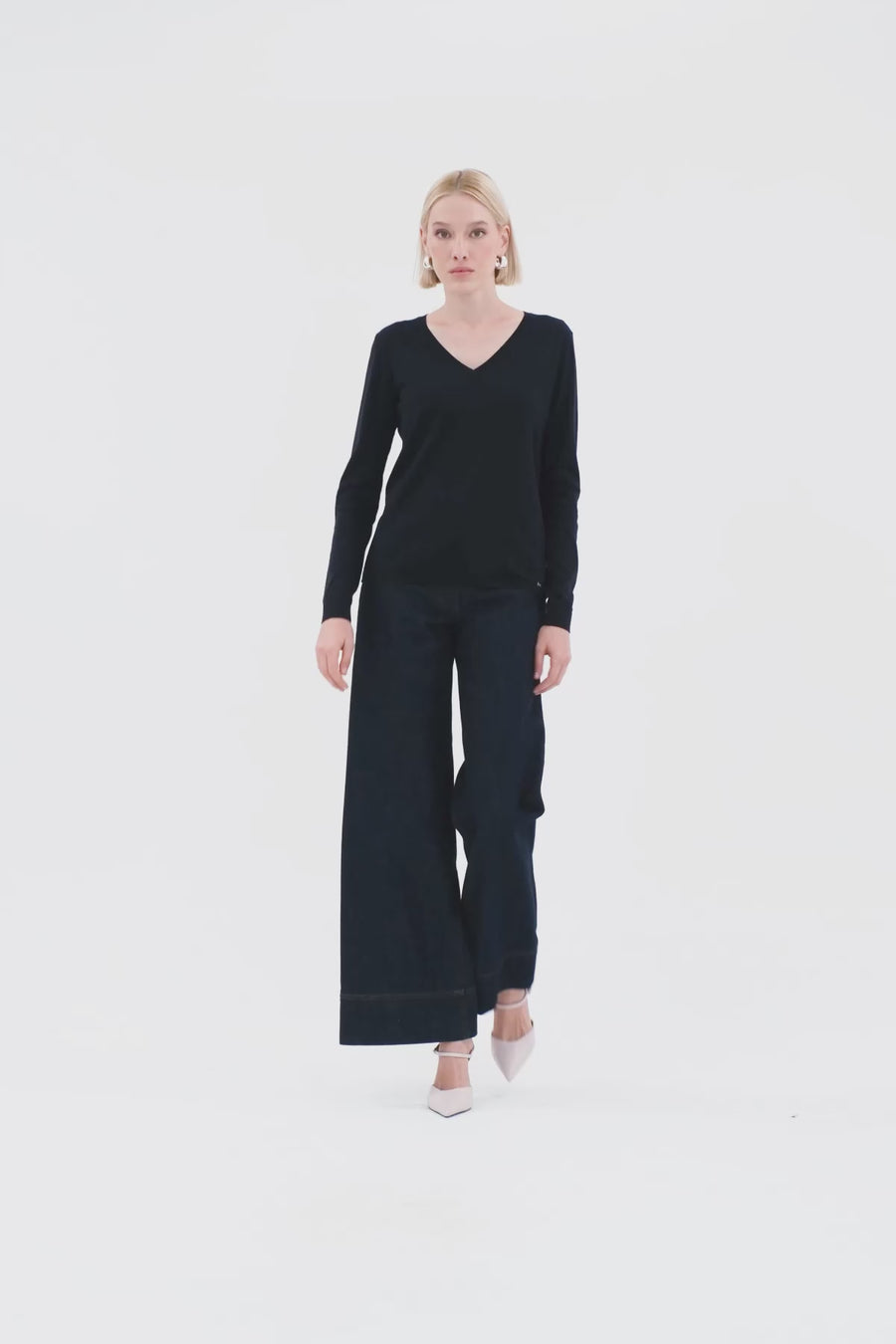 V Yaka Düğme Kapamalıuzun Kollu Hırka
