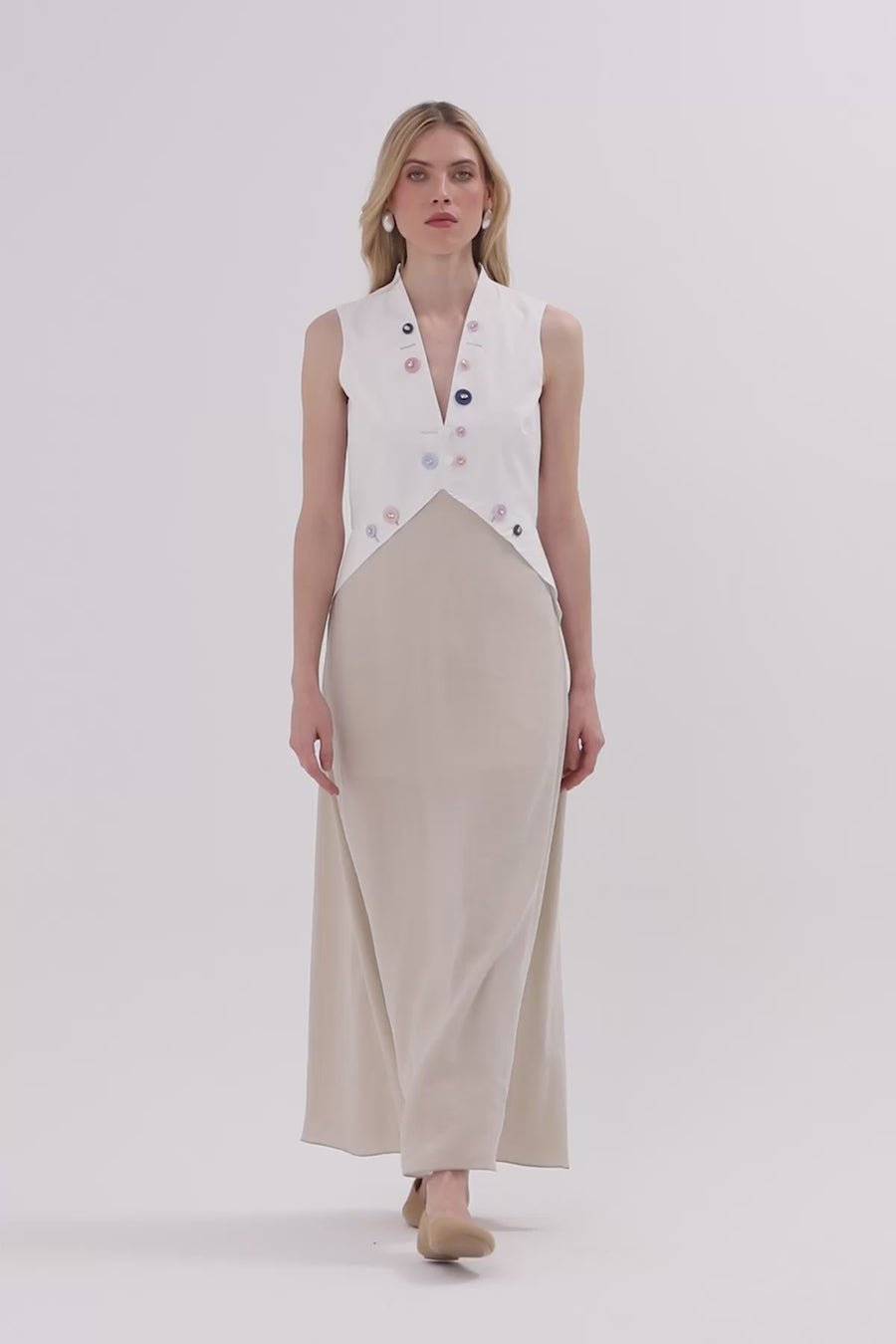 V Yaka Taş İnci İşlemeli Ekru Abiye Abiye Elbise