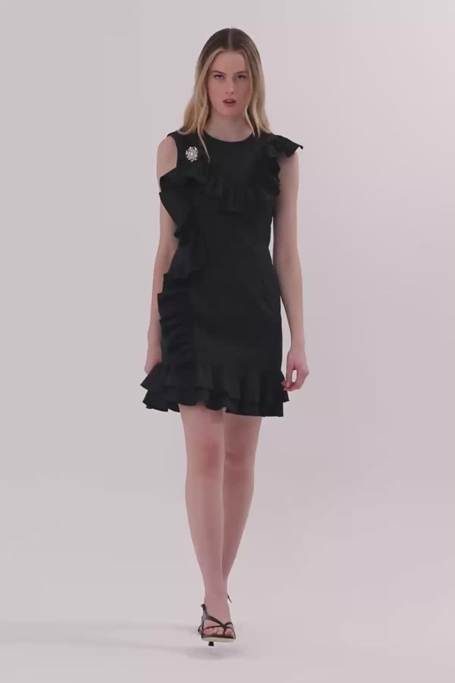 Vatka Ve Zincir Detaylı Payetli Mini Elbise