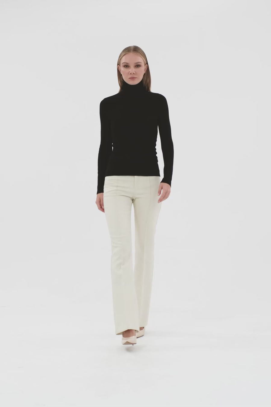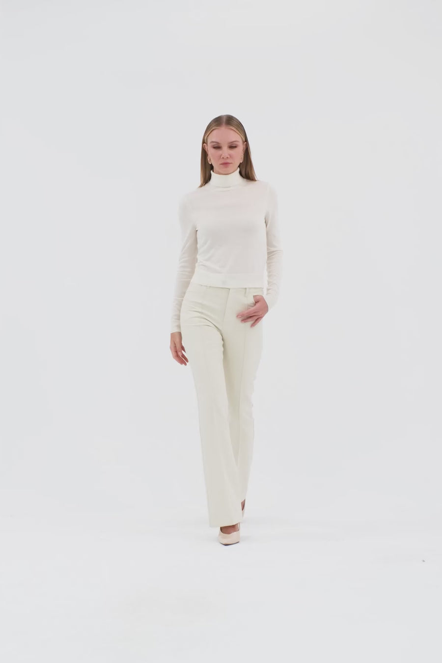 Bisiklet Yaka Uzun Kollu Örme Ekru Bluz