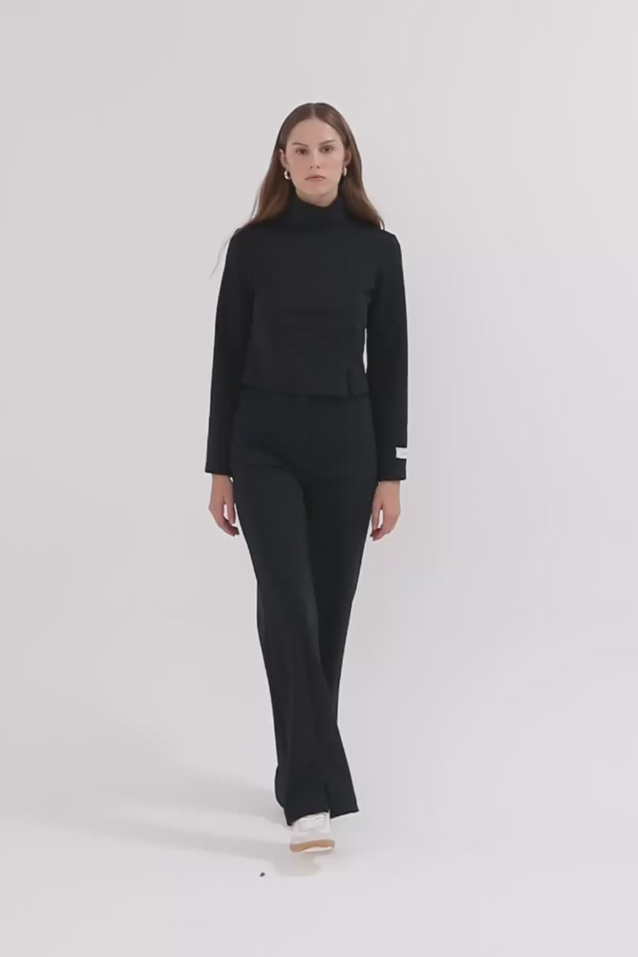 Asimetrik Kesim Yüksek Yakalı Crop