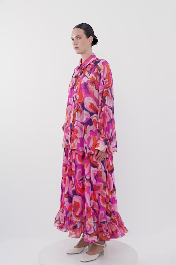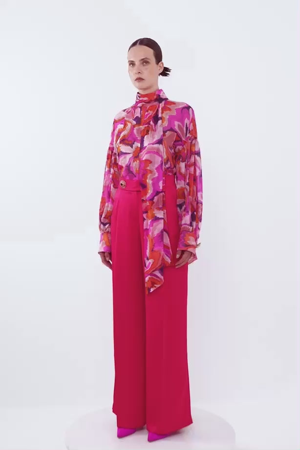 Yarı Transparan Fiyonk Bağlamalı Karpuz Kollu Bluz