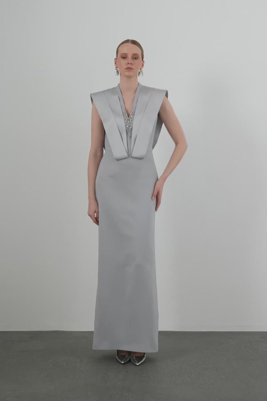 Sırtı Pencere Detaylı Uzun Kemik Elbise