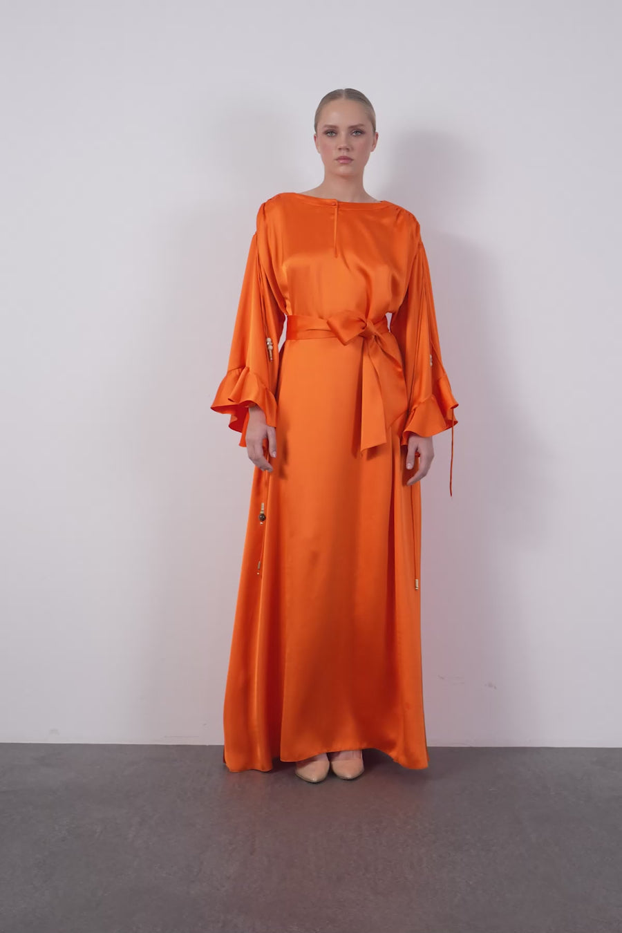 Boyundan Bağlamalı Büzülebilir Katmanlı Renk Elbise