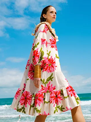 Dantel Detaylı Desenli Bol Kesim Elbise