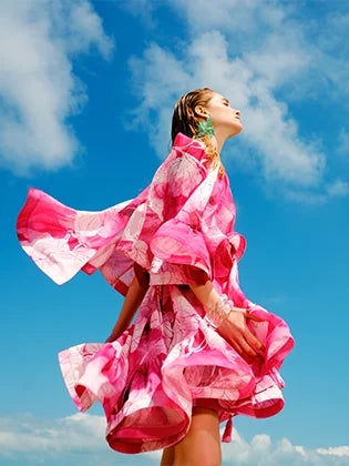 Kolları Büzgülü Rahat Kesim Uzun Renkli Elbise