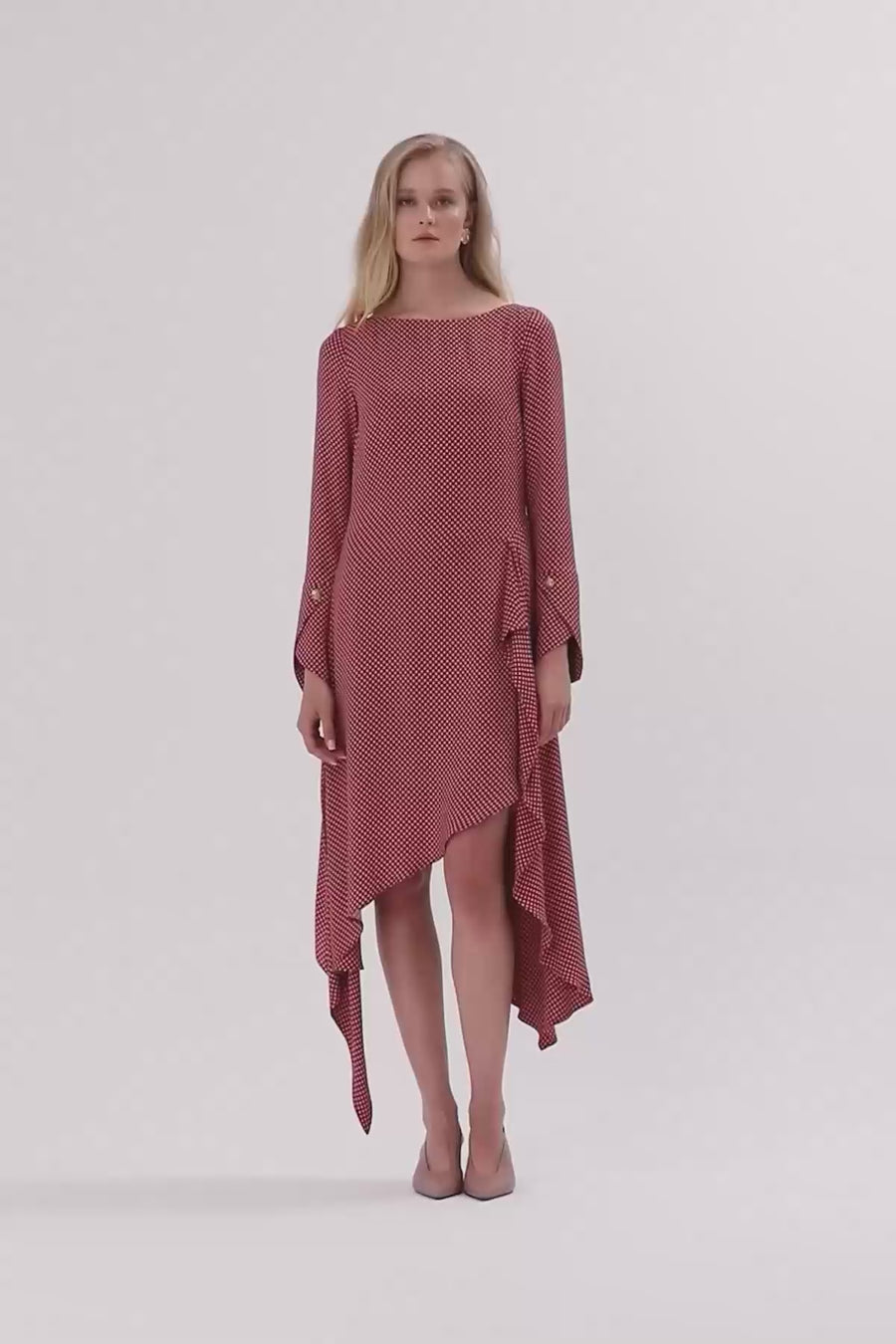 Kare Desenli Asimetrik Kesim Elbise
