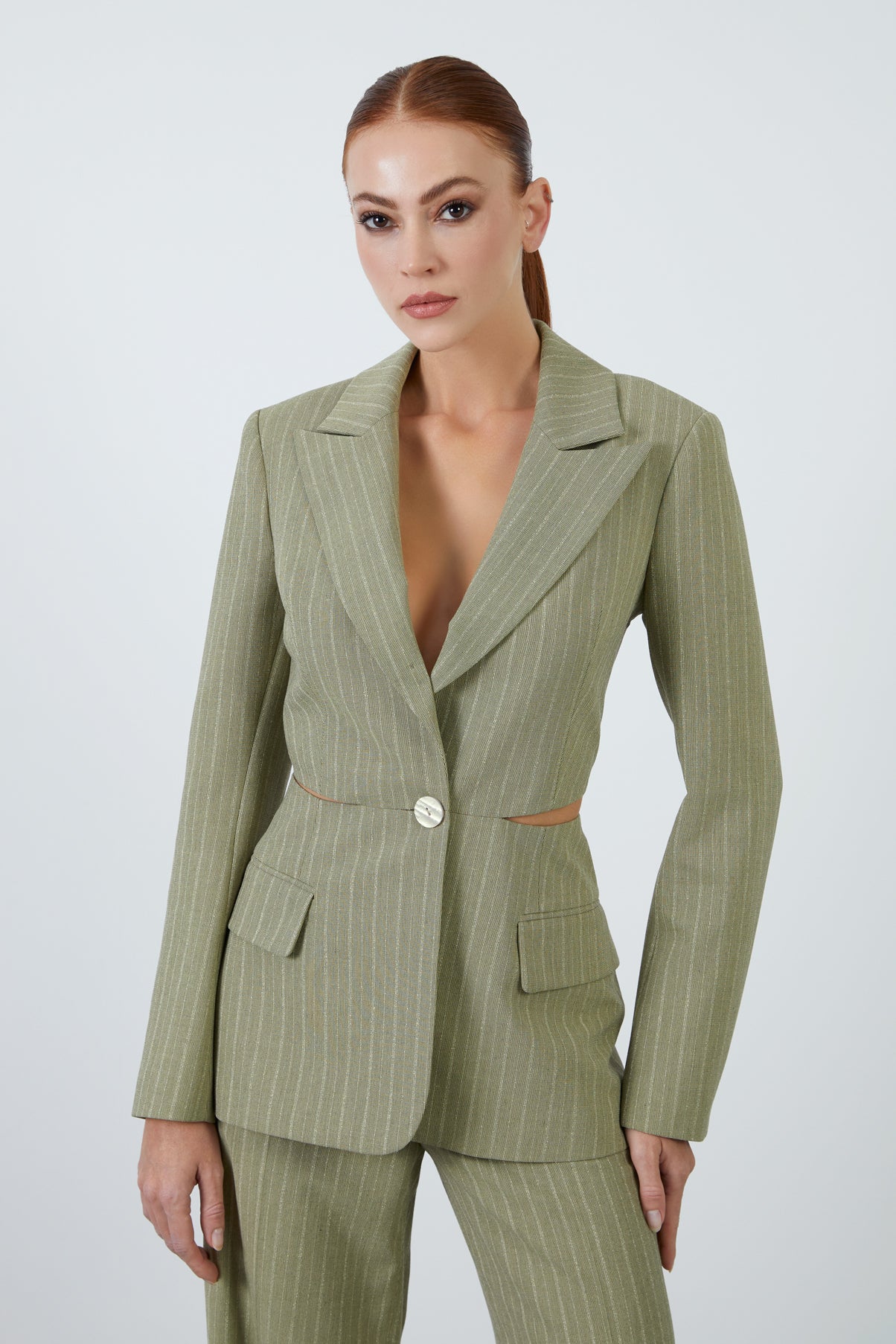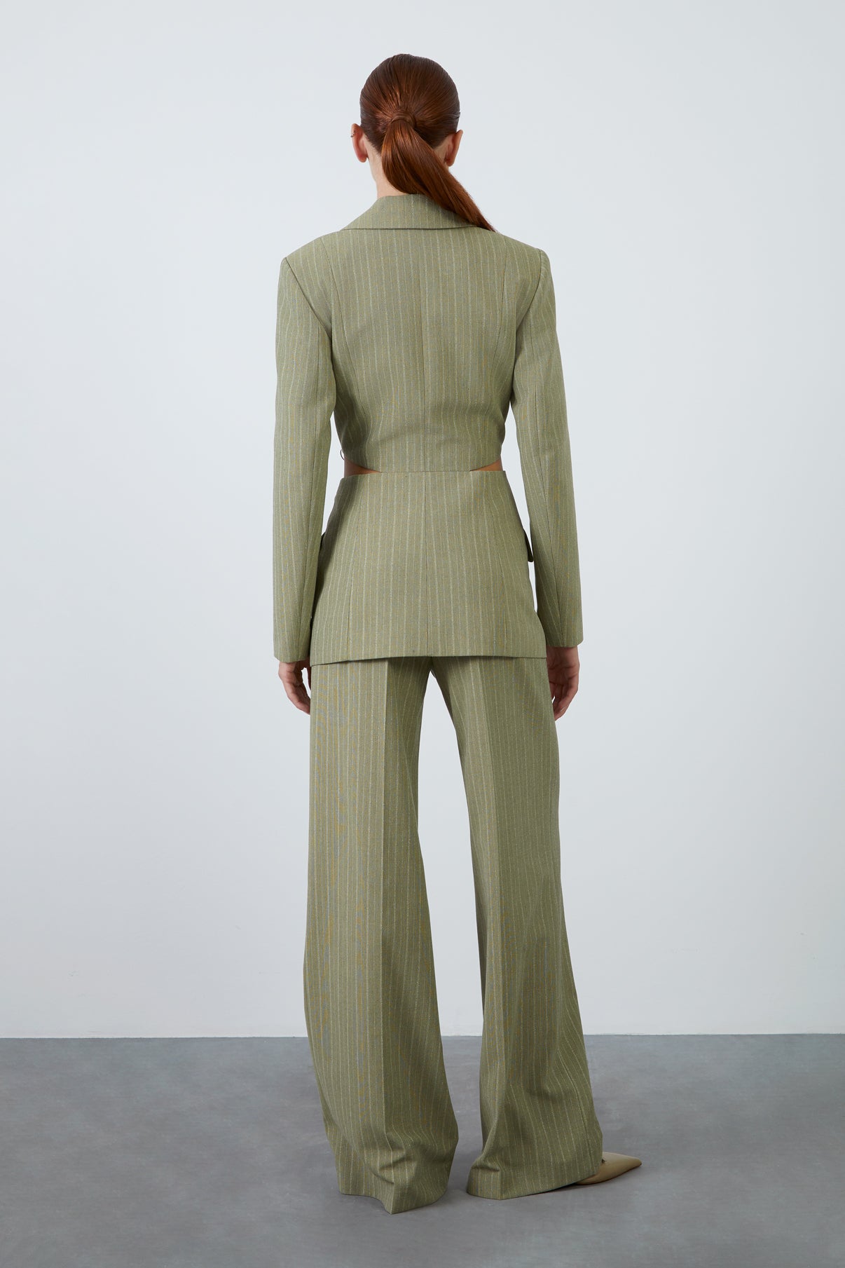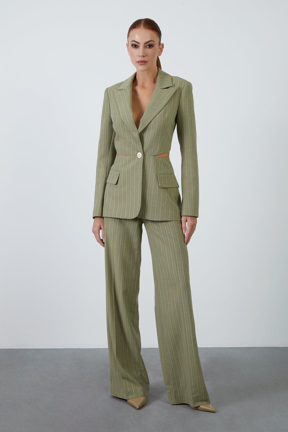 Sırtı Pencereli Ceket Ve Bol Pantolonlu Açık Haki Takım