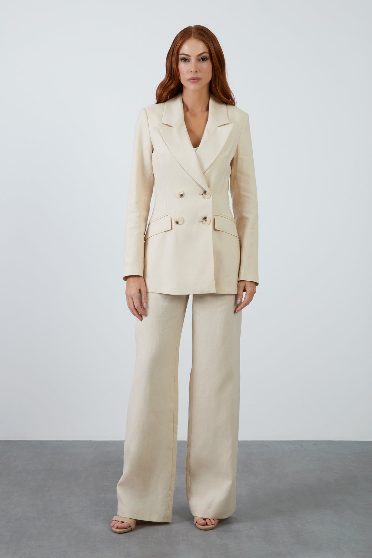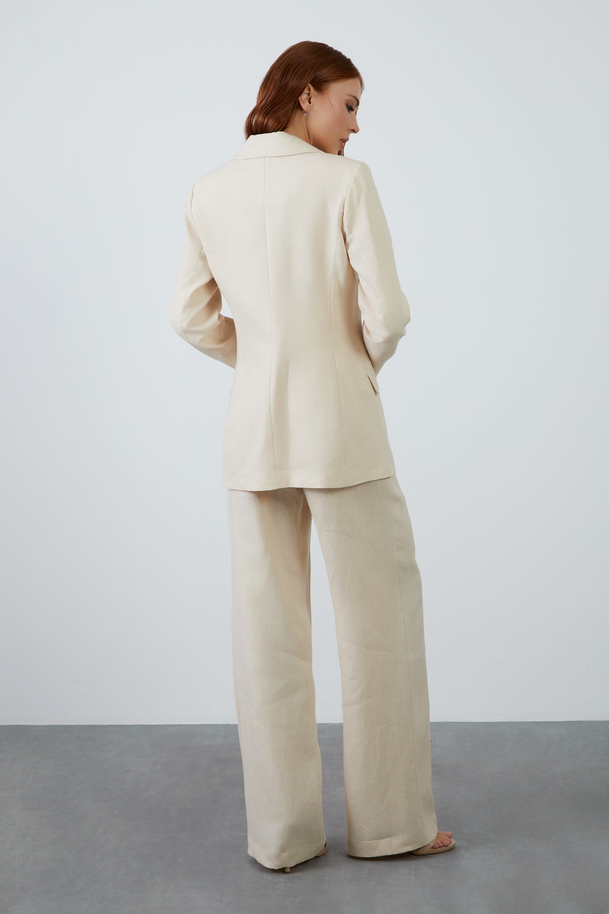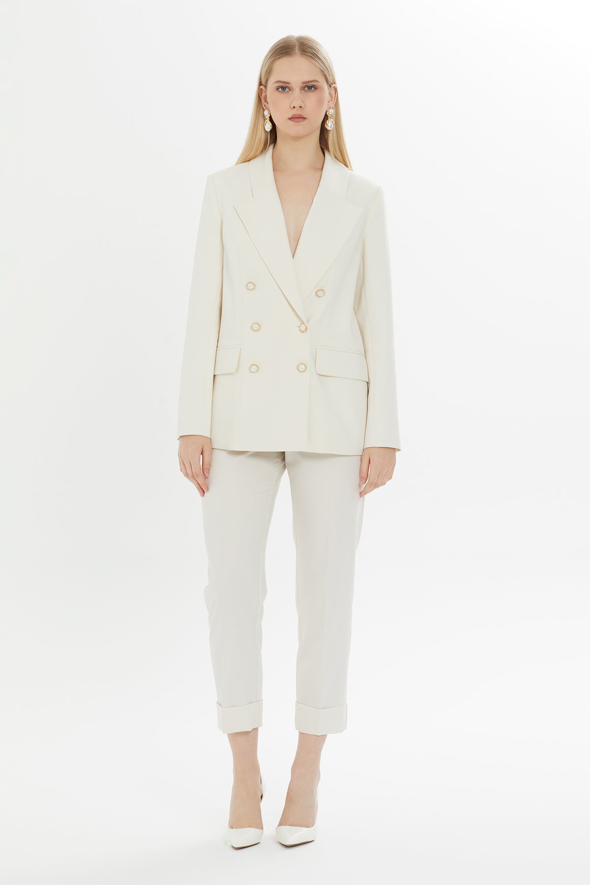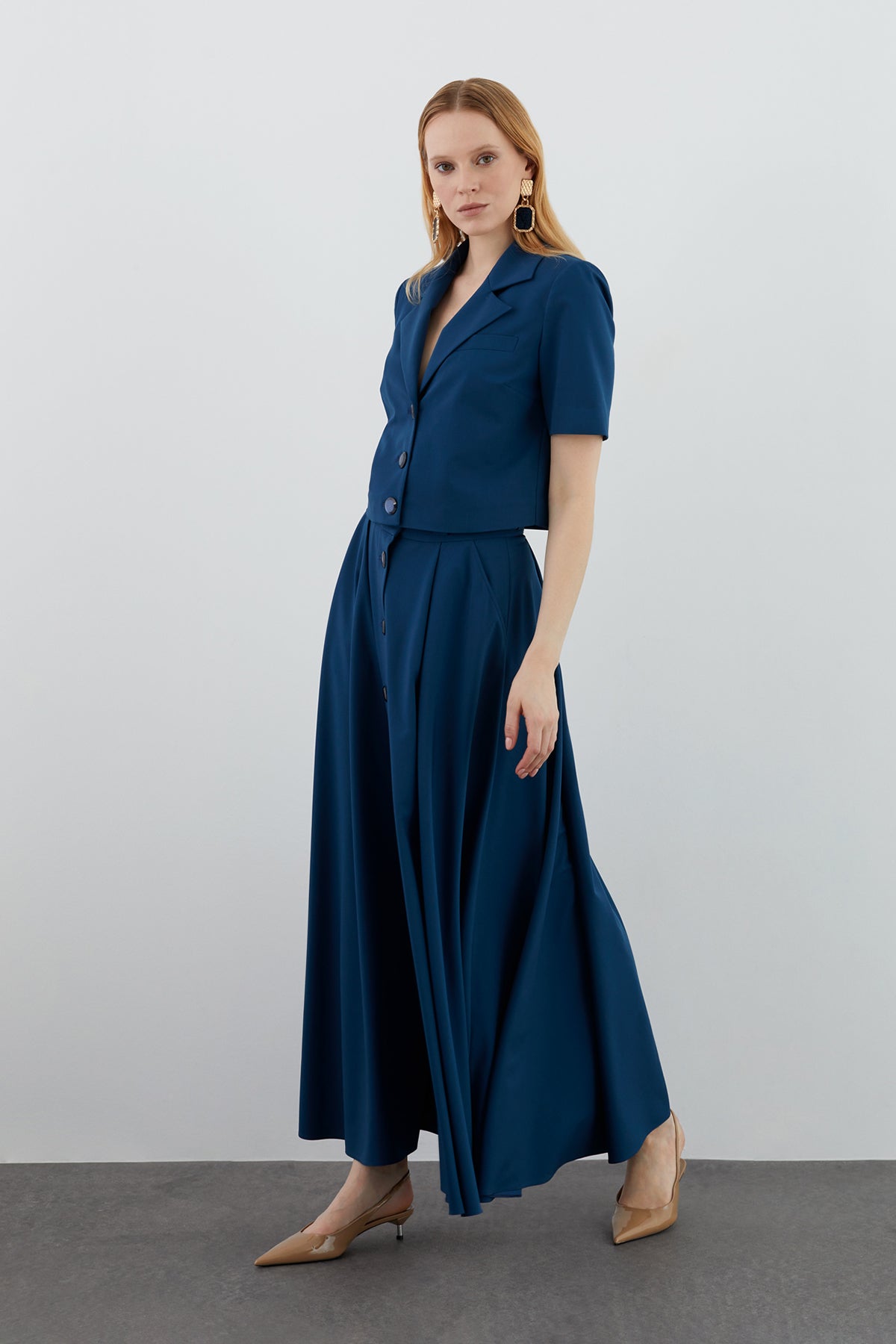 Düğme Detaylı Ceketli Ve Palazzo Pantolonlu Takım