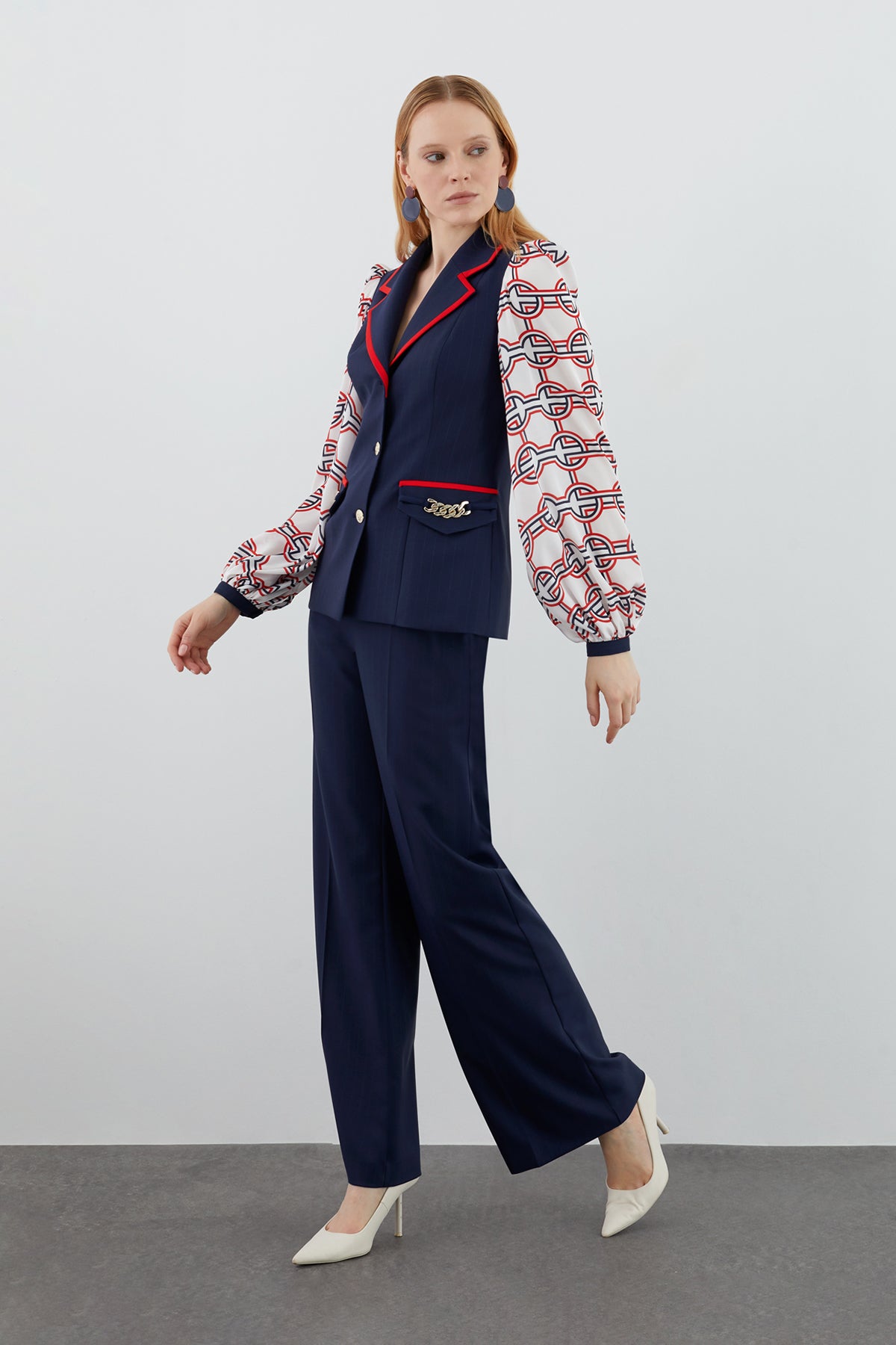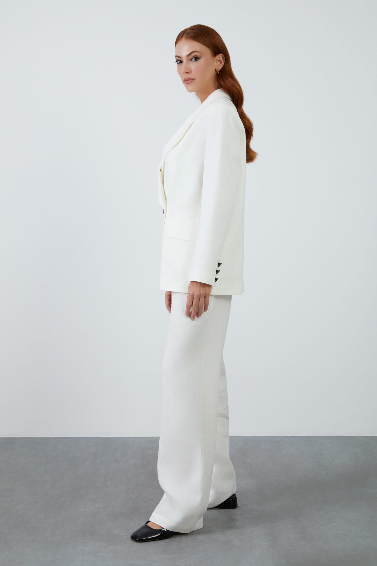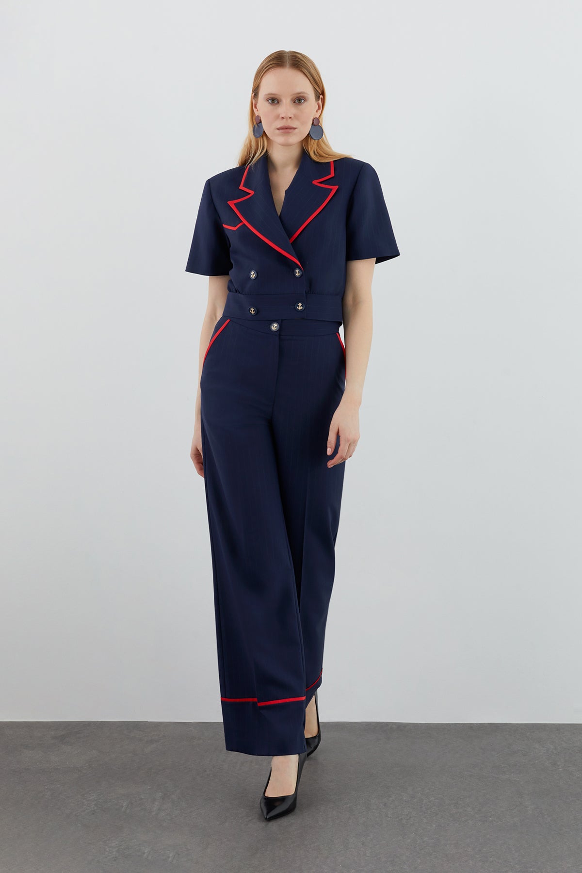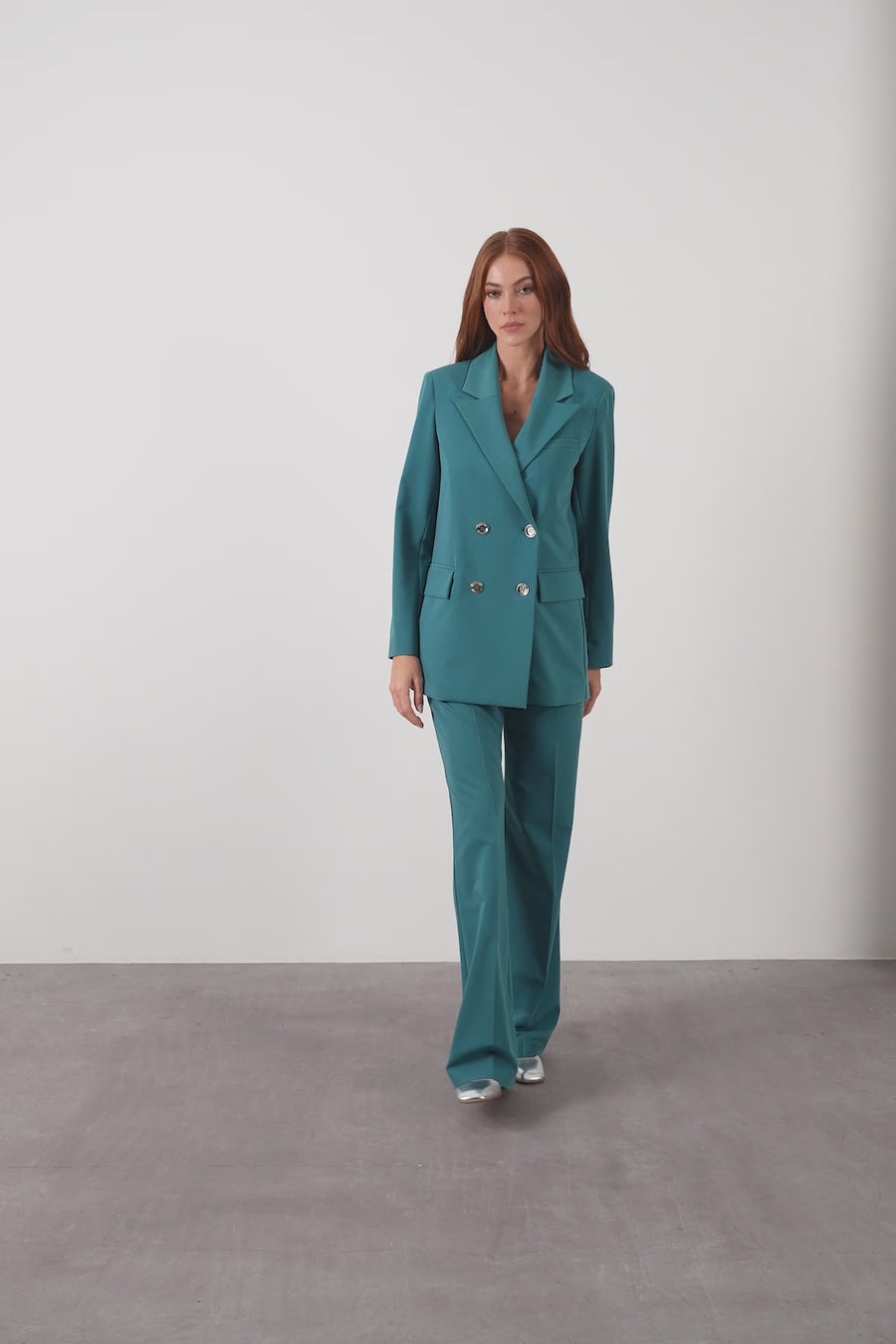 Kontrast Düğme Detaylı Ceket Ve Palazzo Pantolonlu Takım