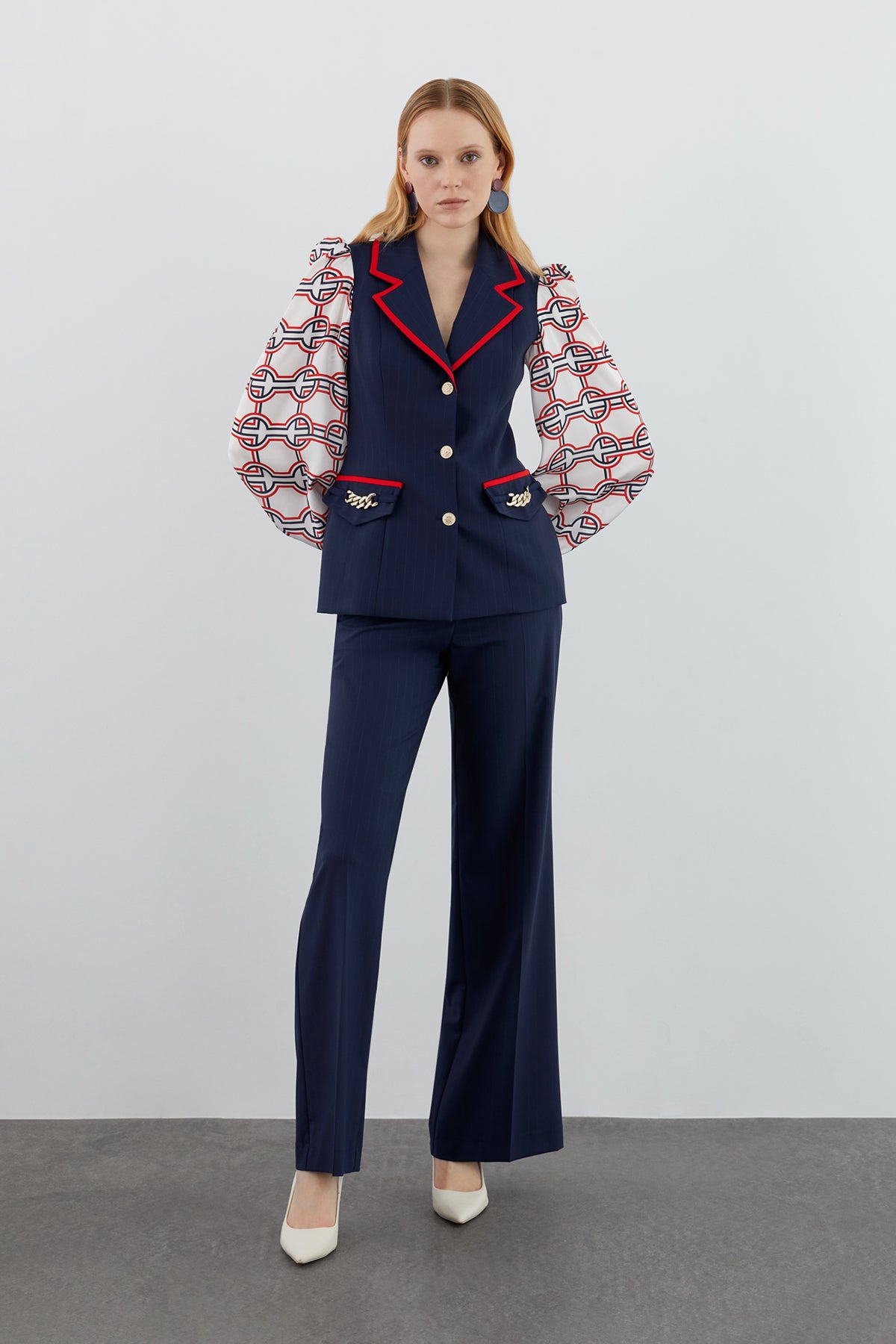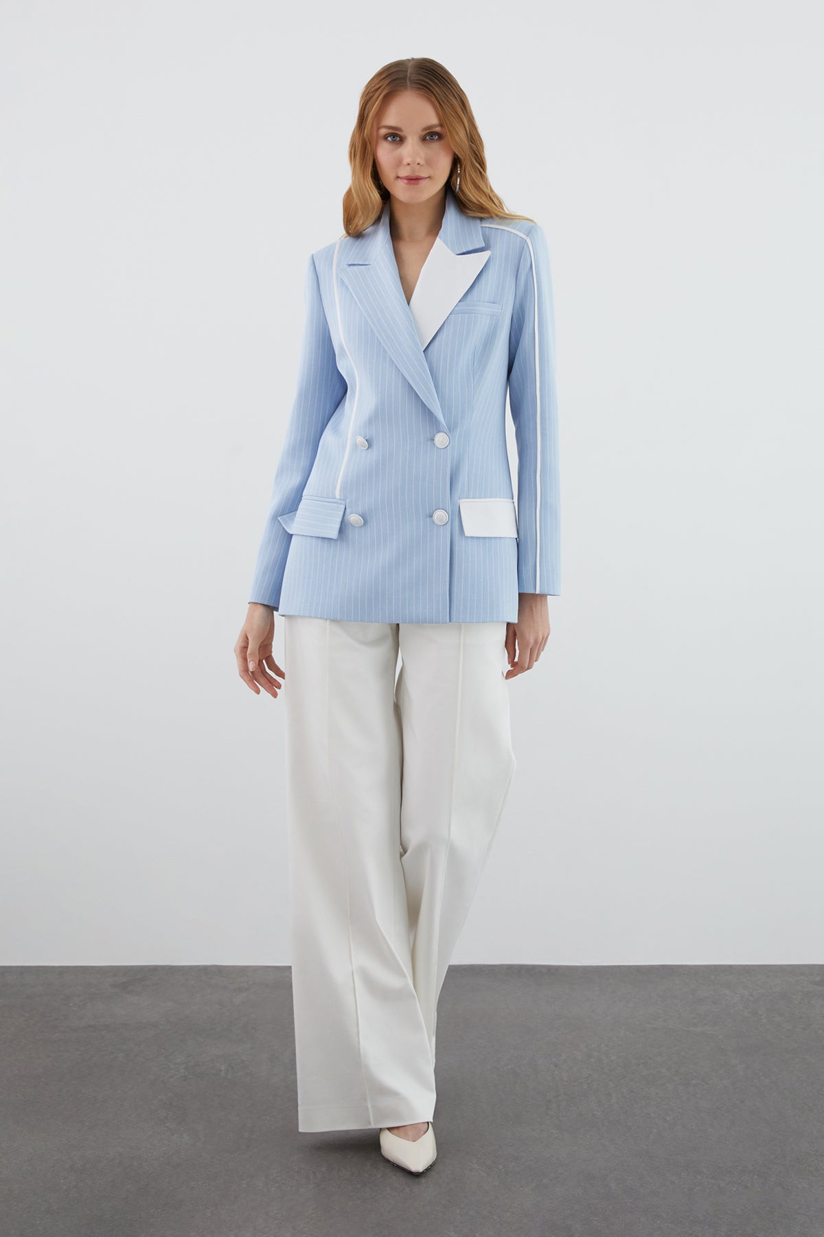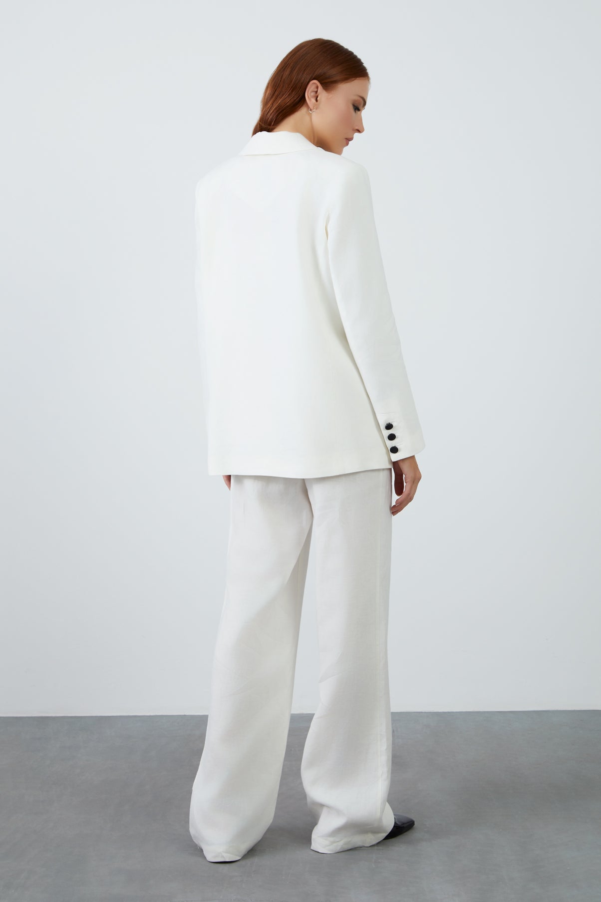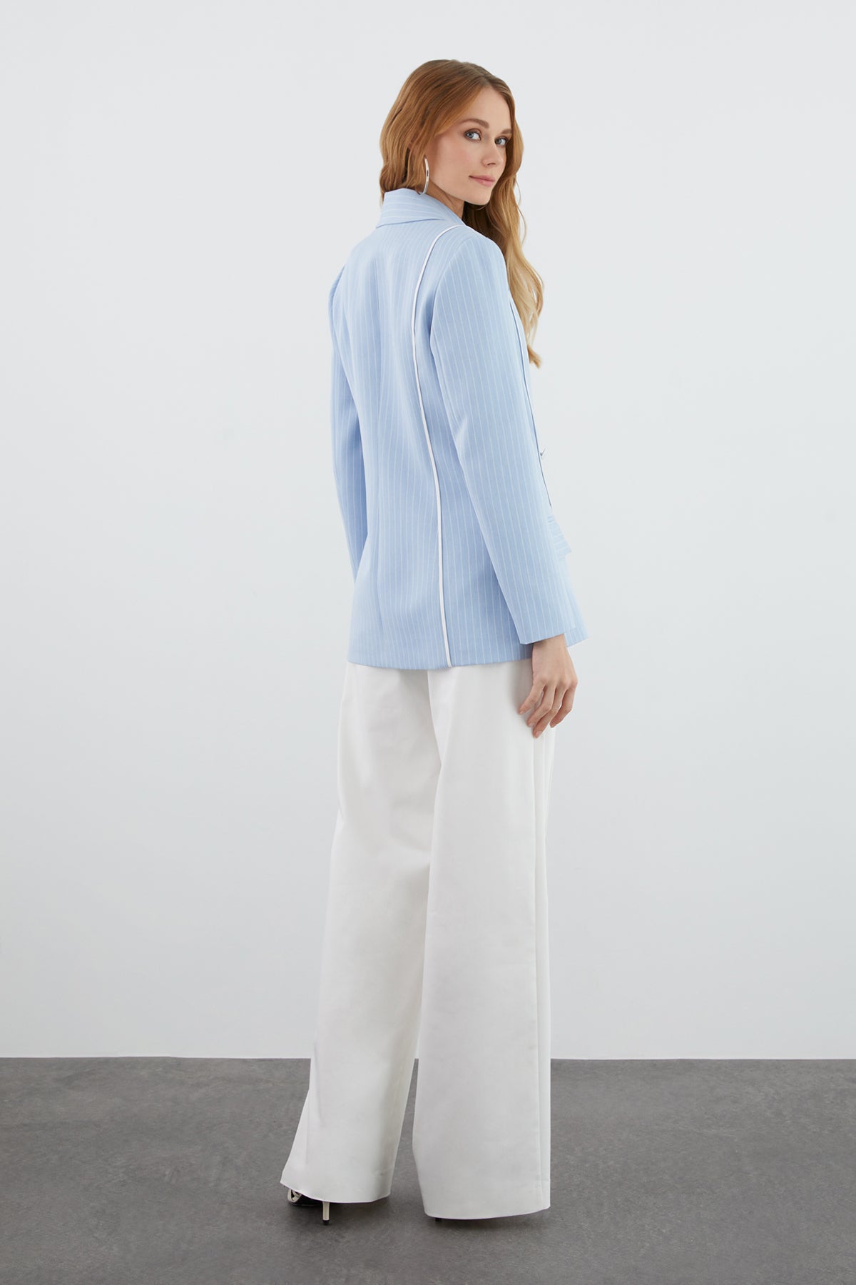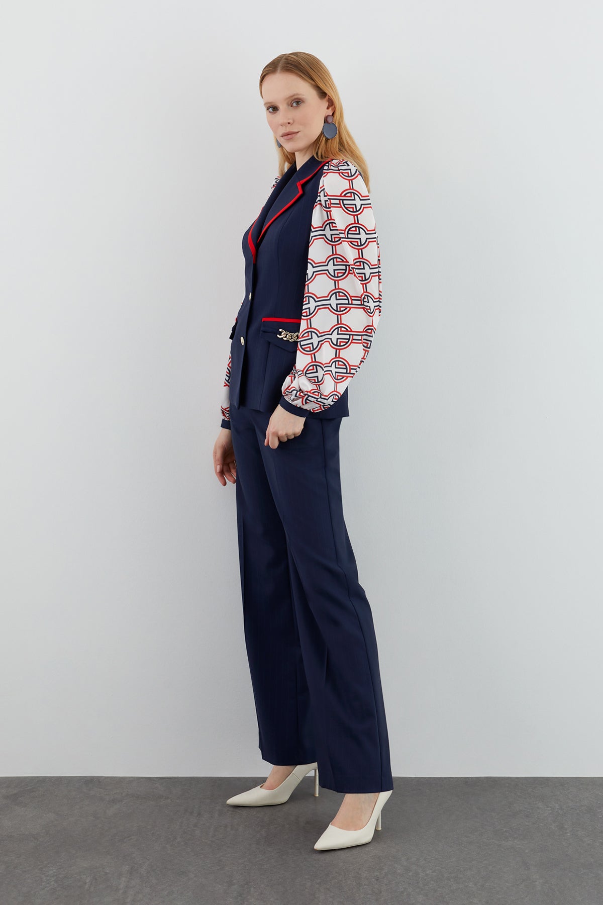 Kontrast Düğme Detaylı Ceket Ve Palazzo Pantolonlu Takım
