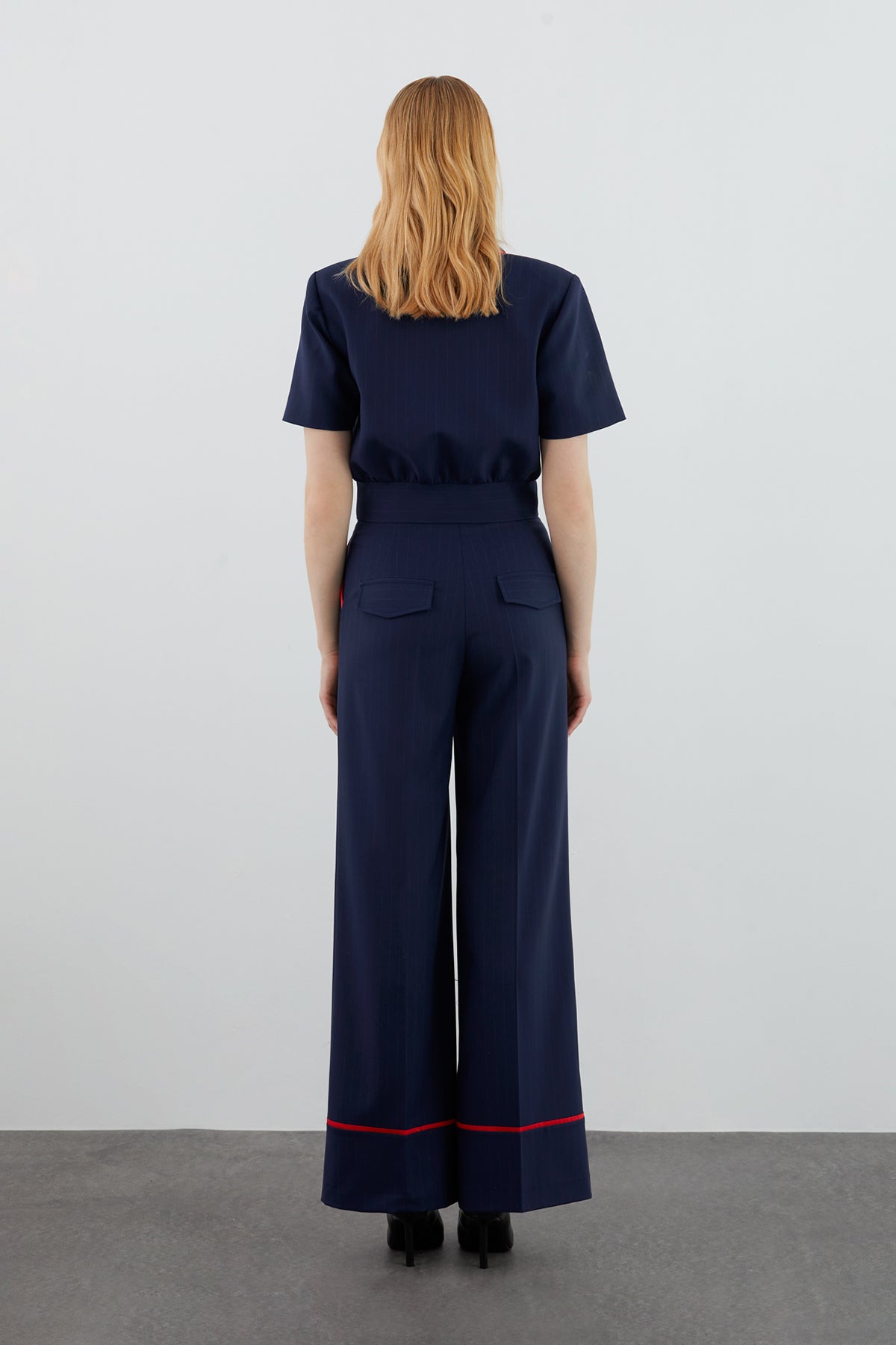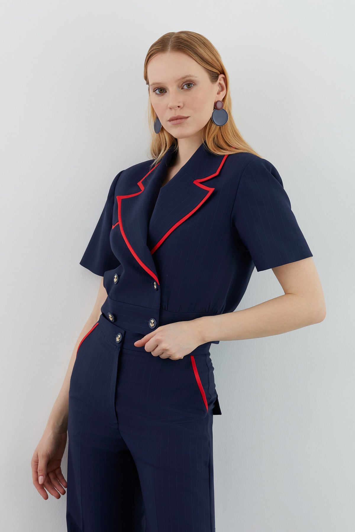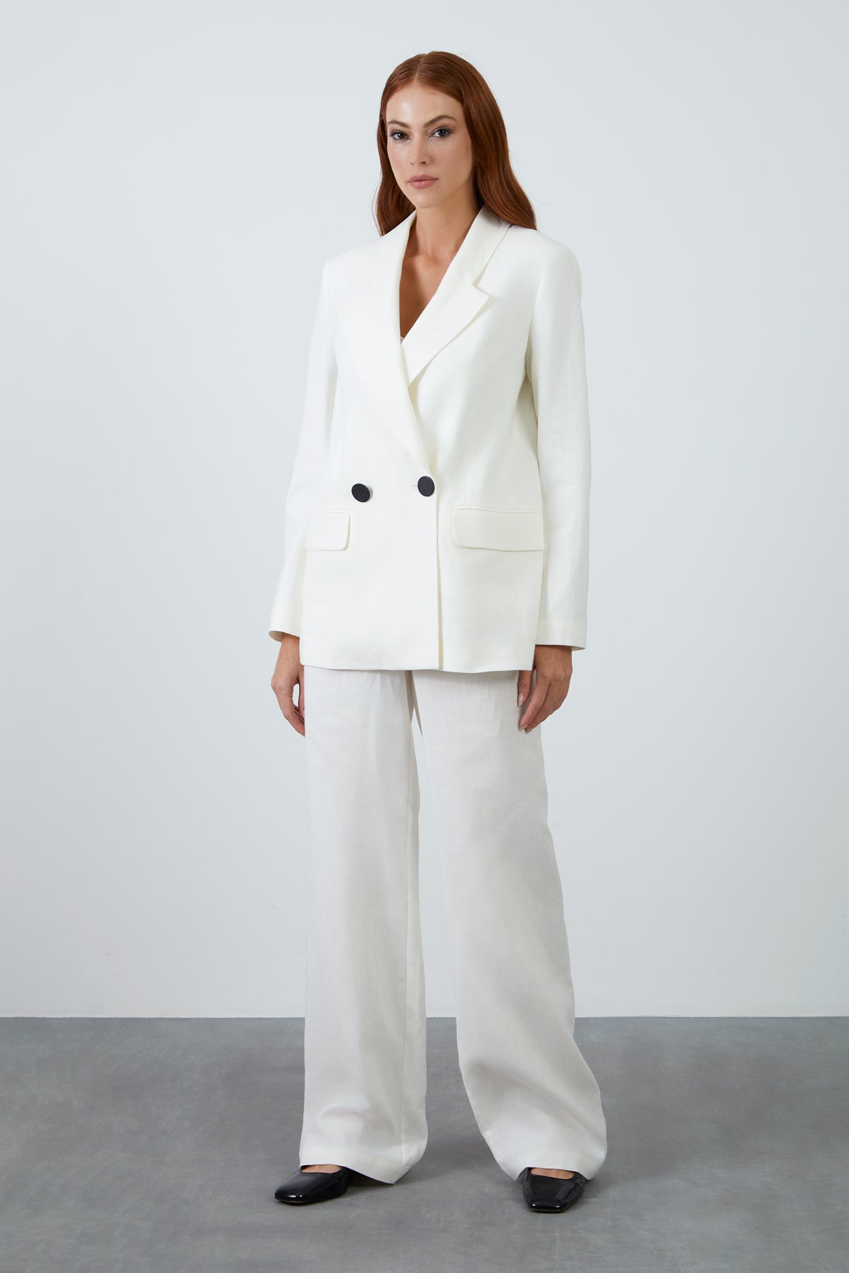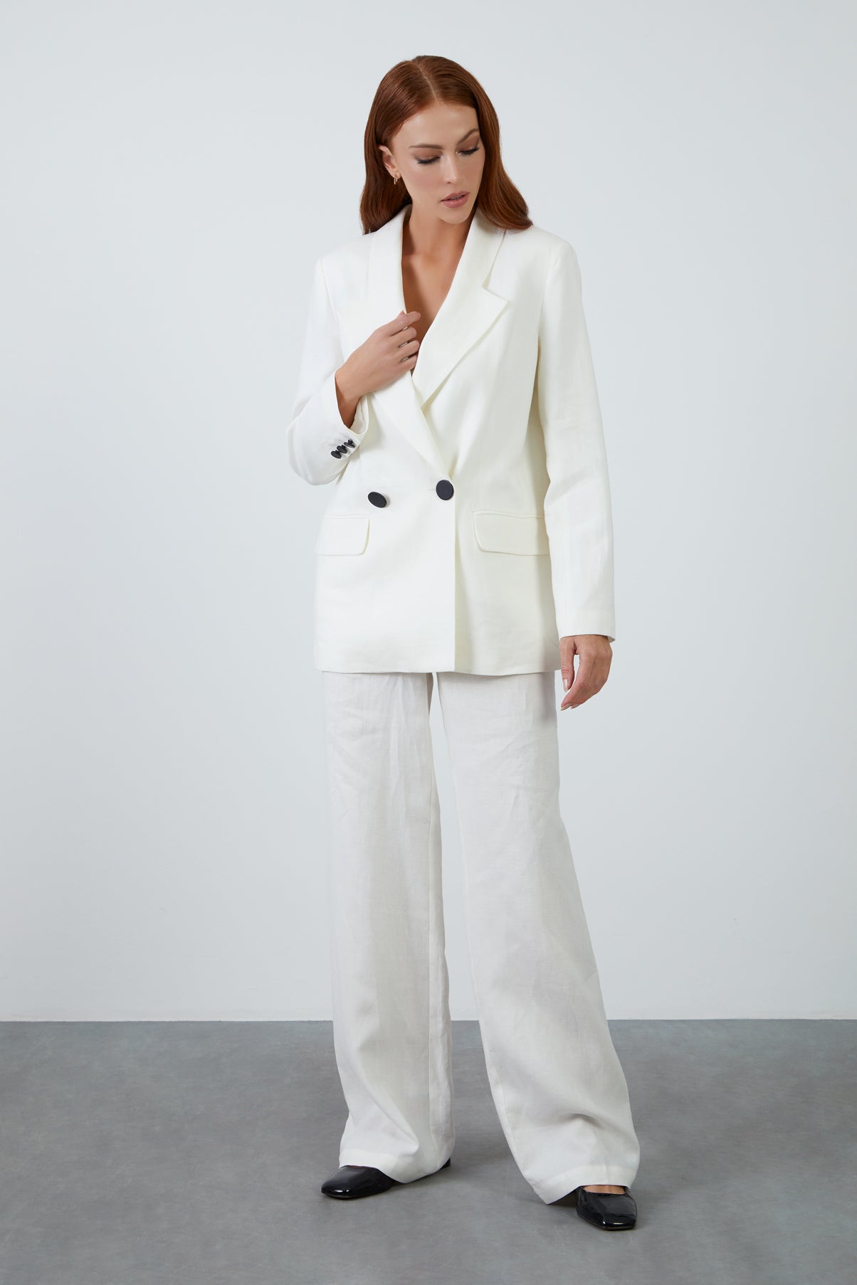 Kontrast Düğme Detaylı Ceket Ve Palazzo Pantolonlu Takım