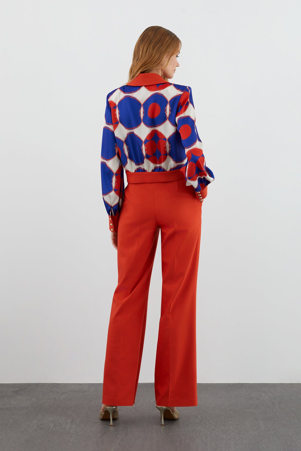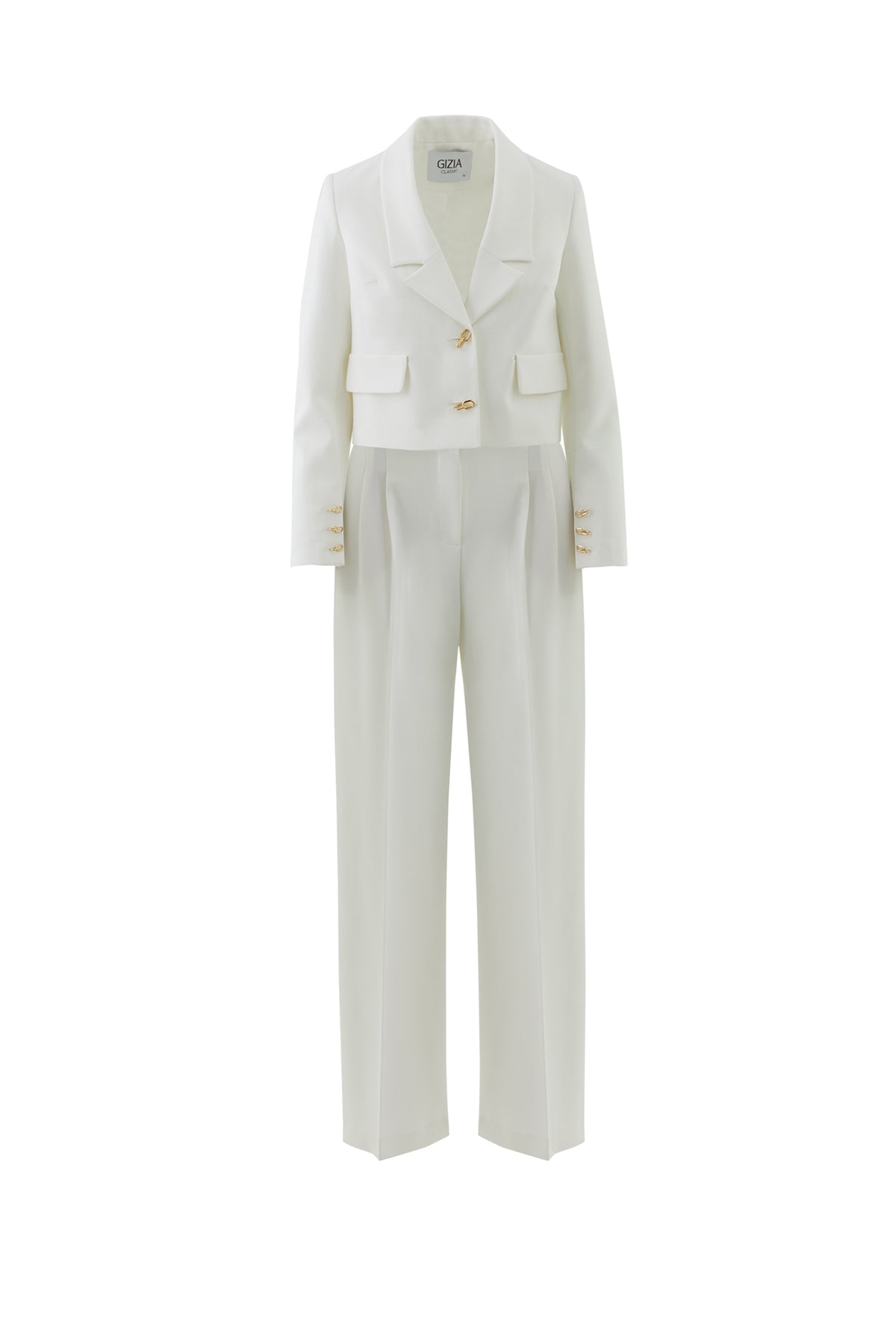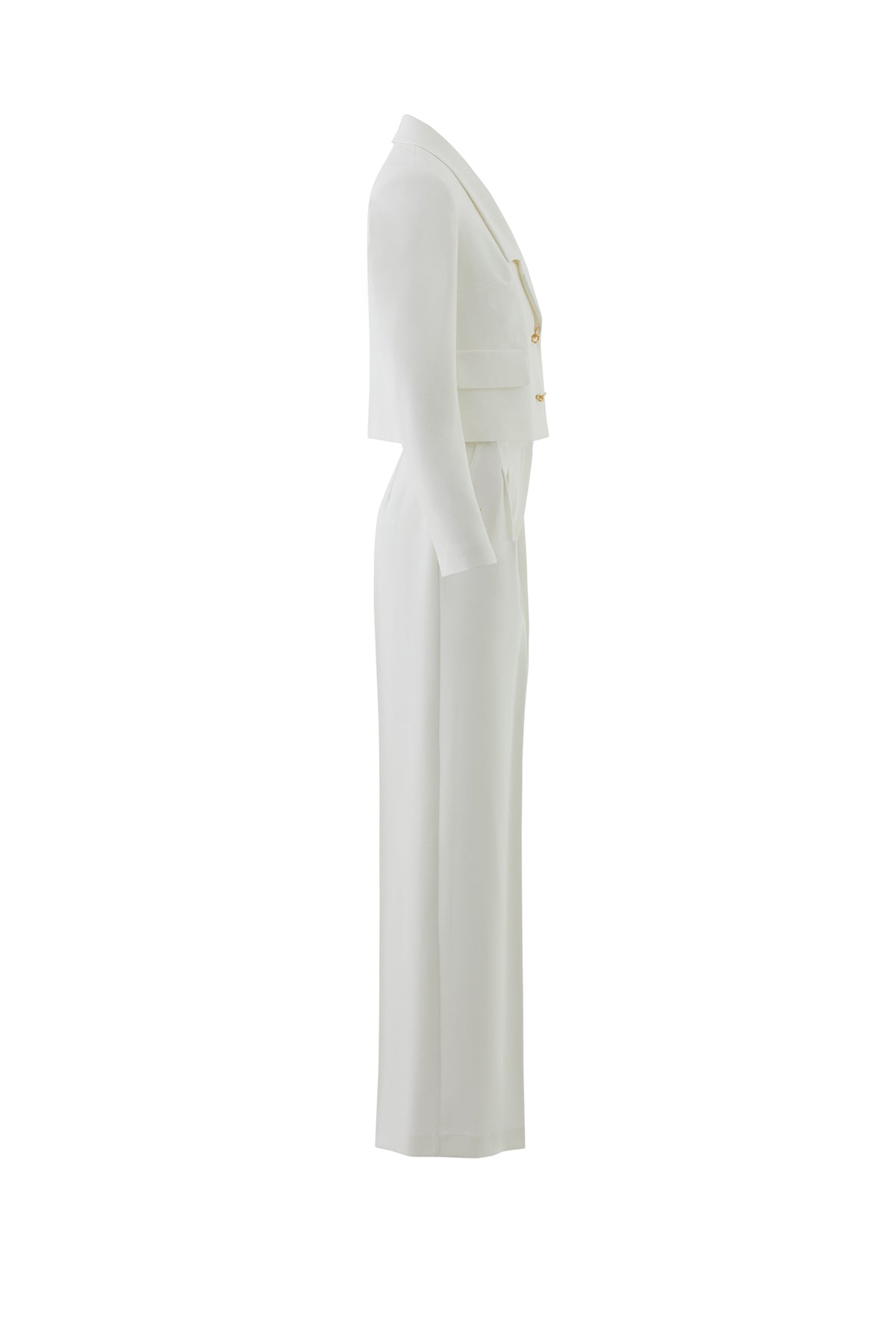 Aksesuar Detaylı Kısa Ceket Ve Palazzo Pantolonlu Takım