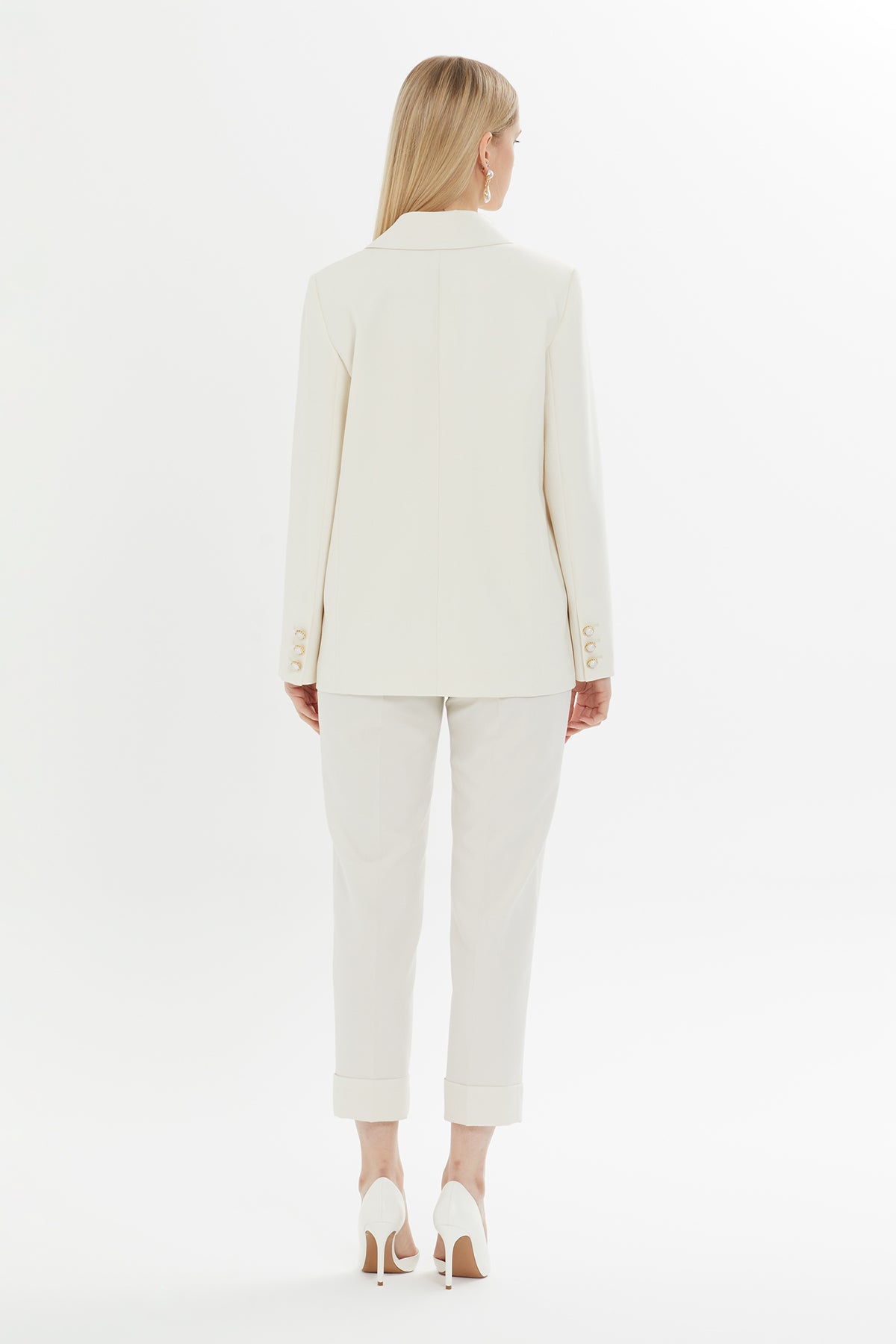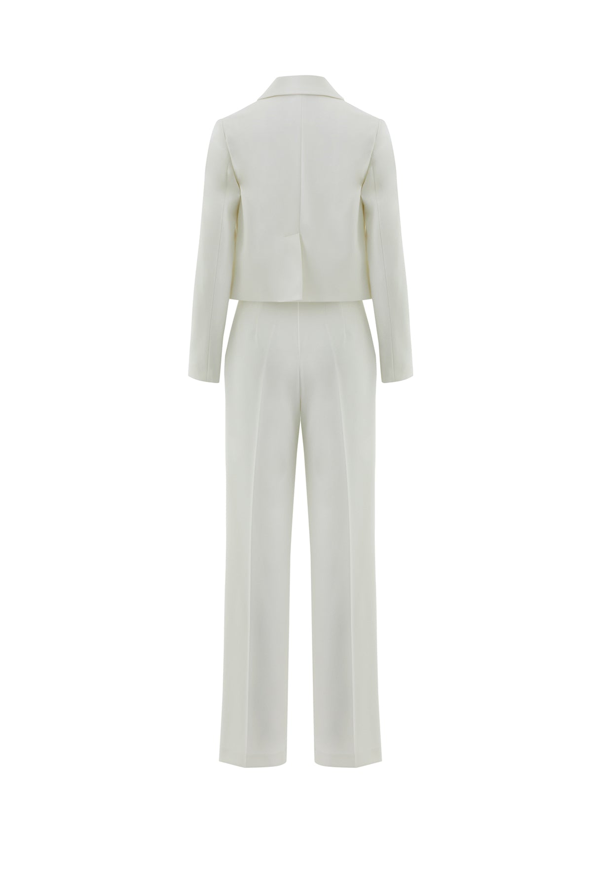 Sırt Pencereli Kruvaze Kapama Ceketli Boru Paça Pantolonlu Takım