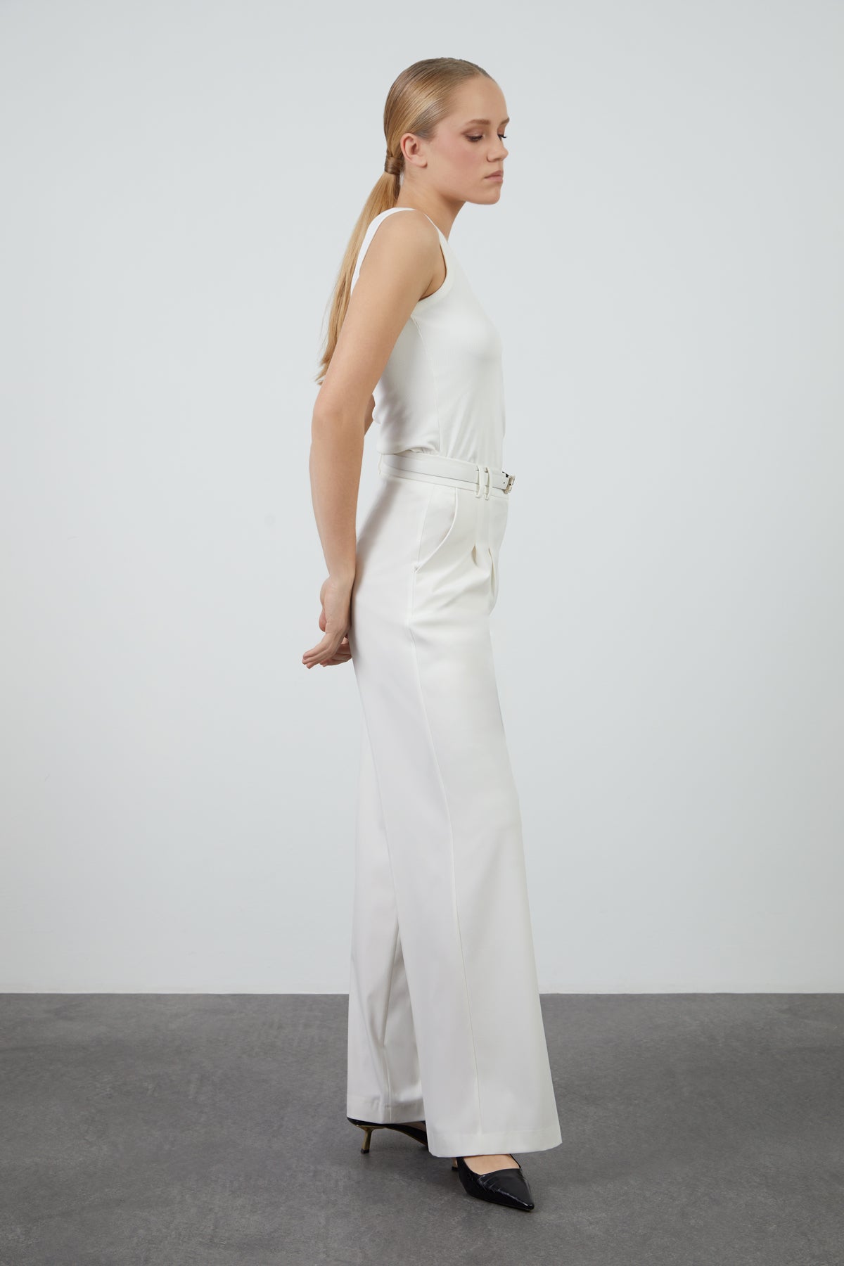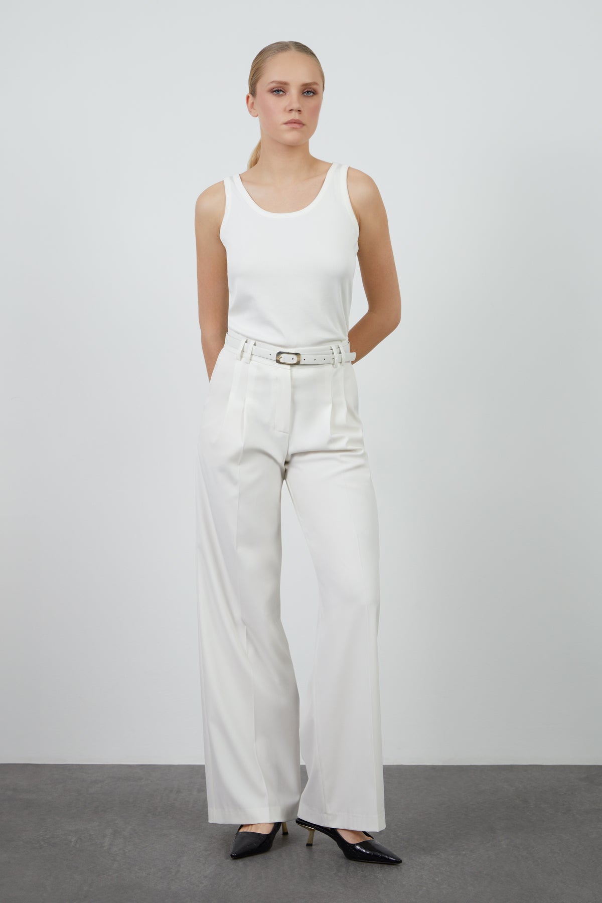 Beli Lastik Detaylı Double Paça Açık Pantolon