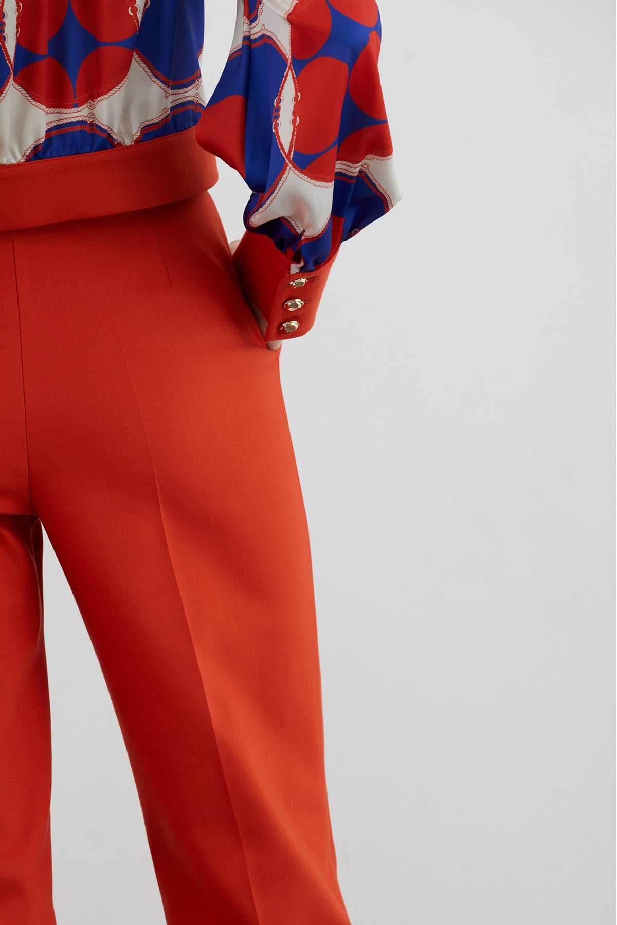 Mono Kapamalı Bele Oturan Pol Paça Pantolonlu Takım