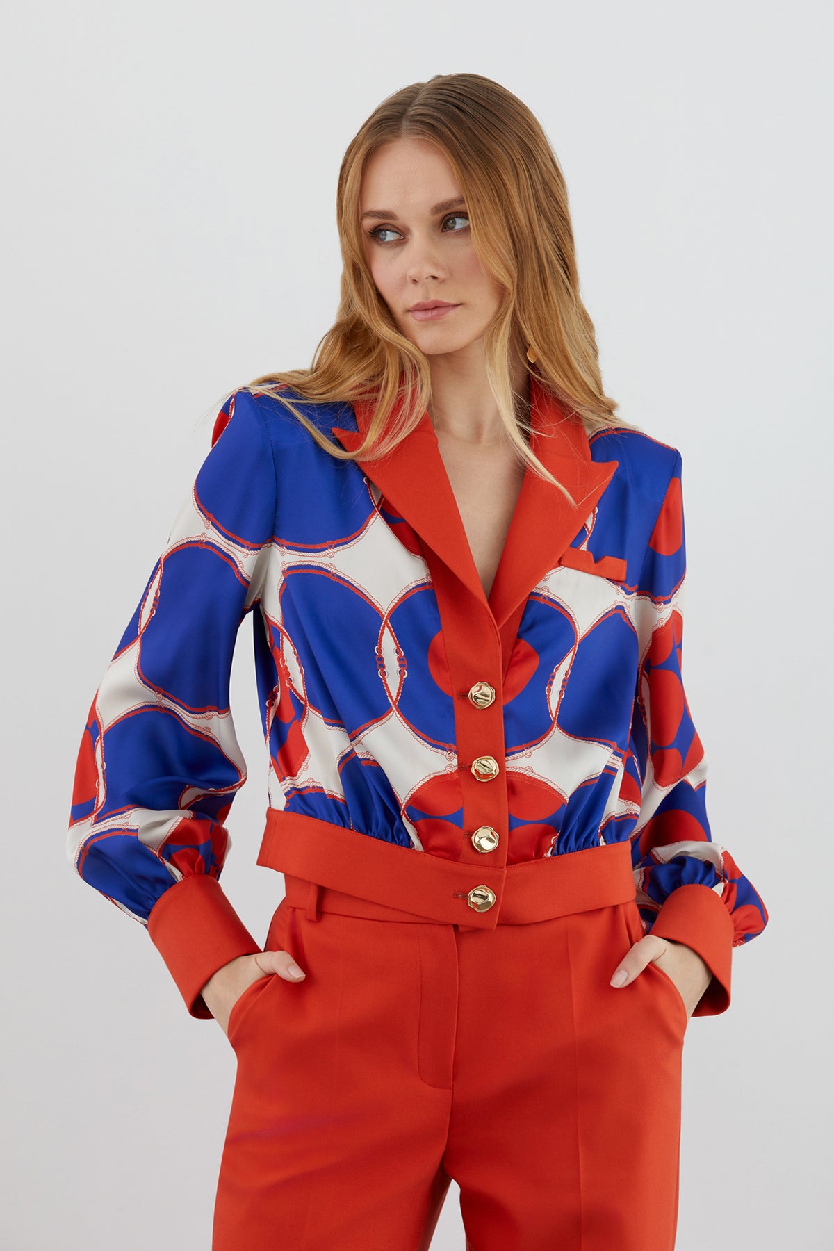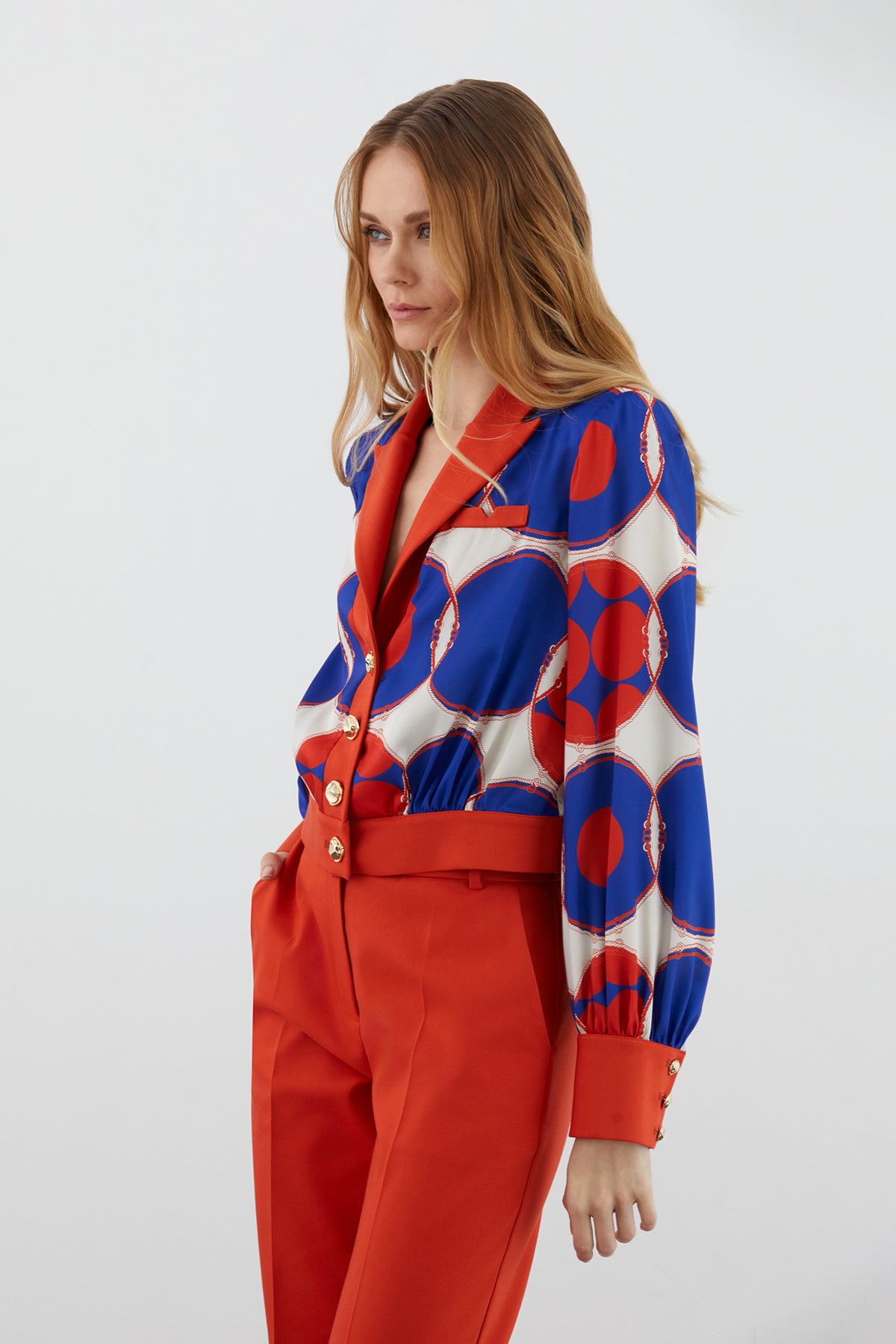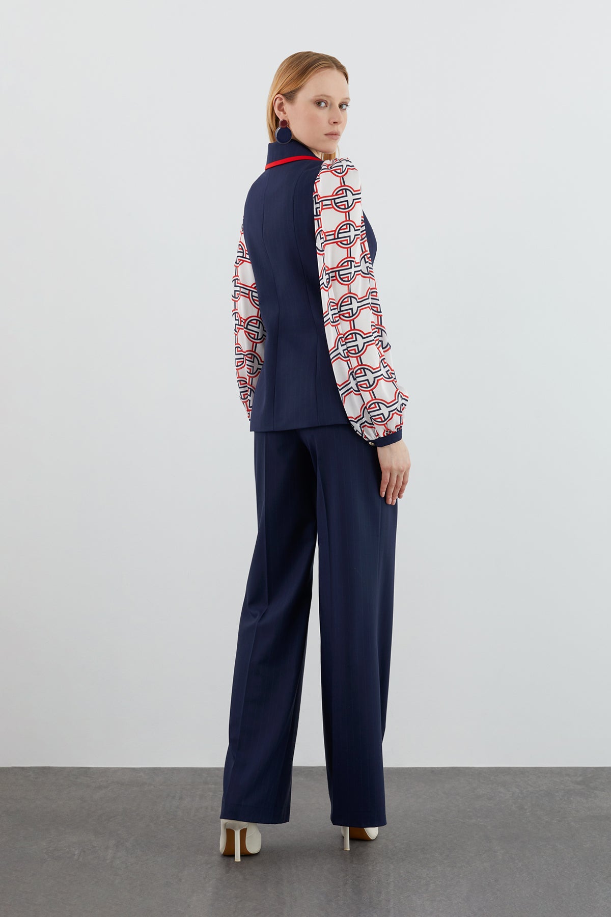 Tek Düğmeli Desenli Ceket Ve Palazzo Pantolonlu Takım