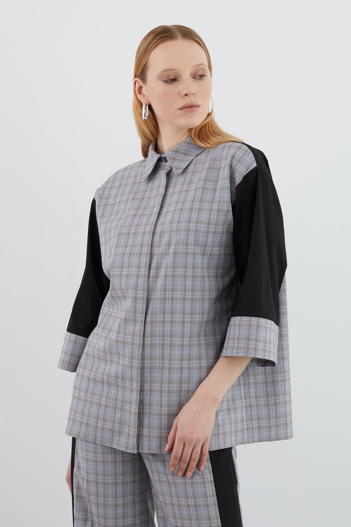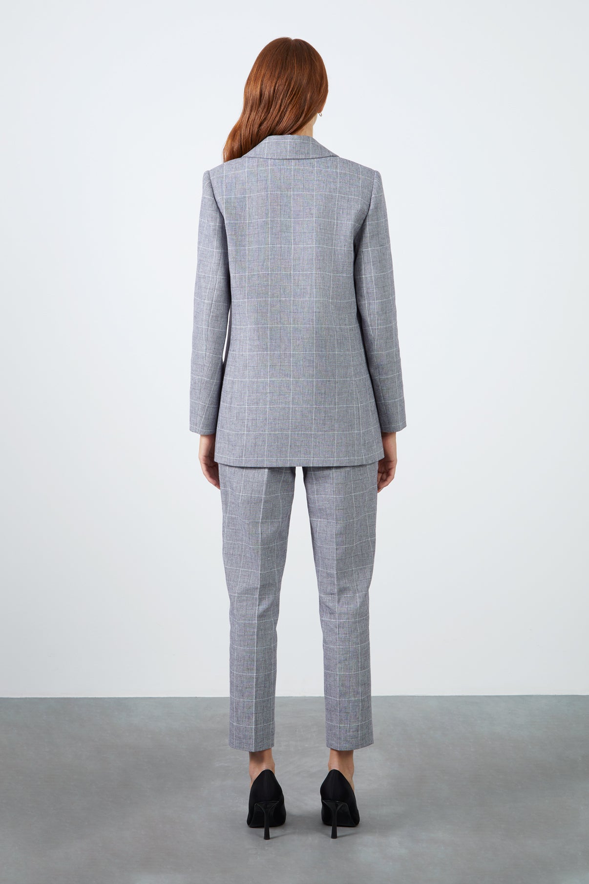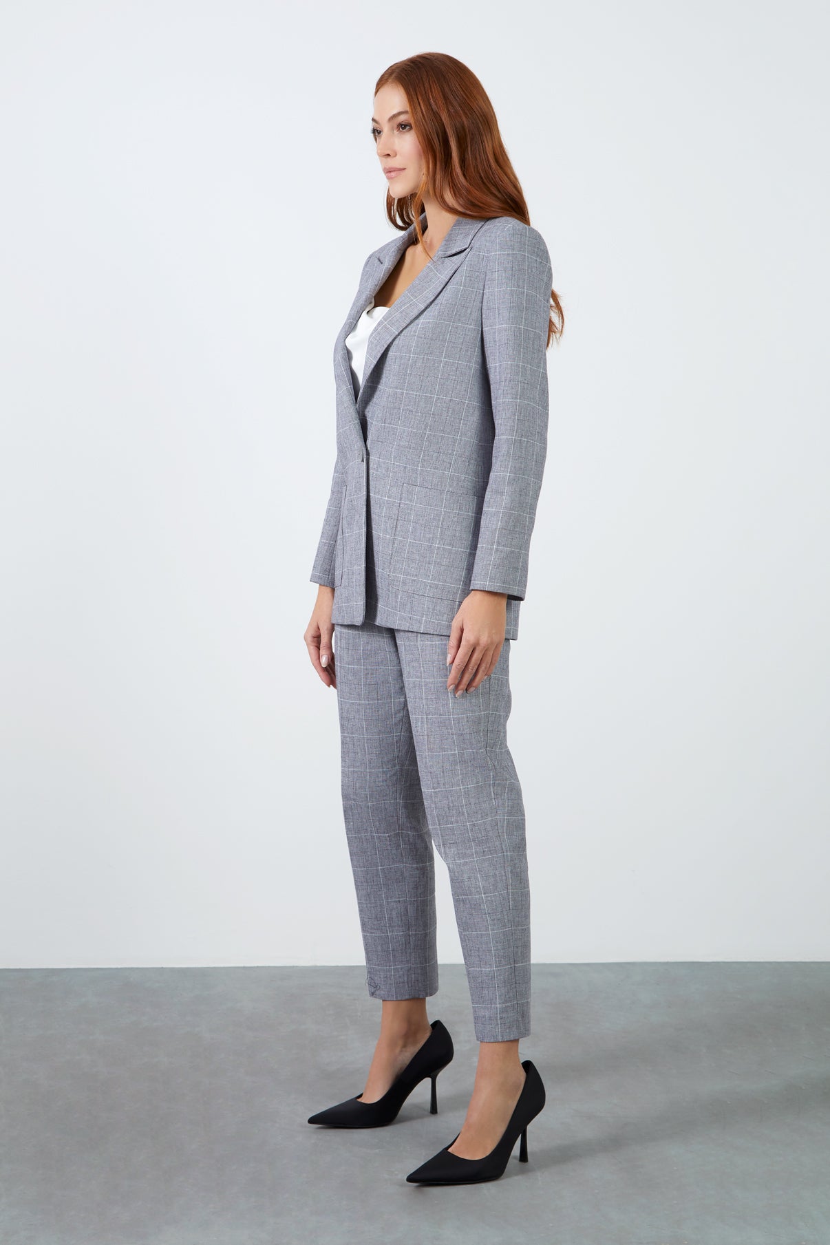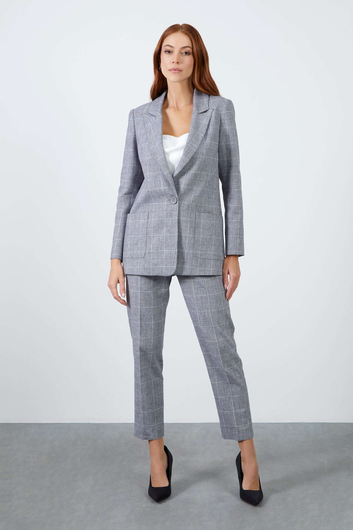 Gömlek Yaka Detaylı Ceket Ve Palazzo Pantolonlu Ekose Desenli Takım